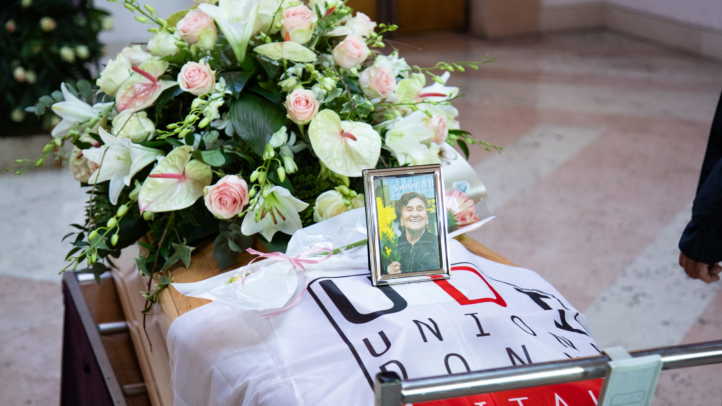 Il feretro è giunto questa mattina dalla camera mortuaria dell’Arcispedale Sant’Anna di Cona per essere accolto nella sala del commiato, dove già dalle prime ore del mattino si respirava un sentimento collettivo di profonda commozione e rispetto.