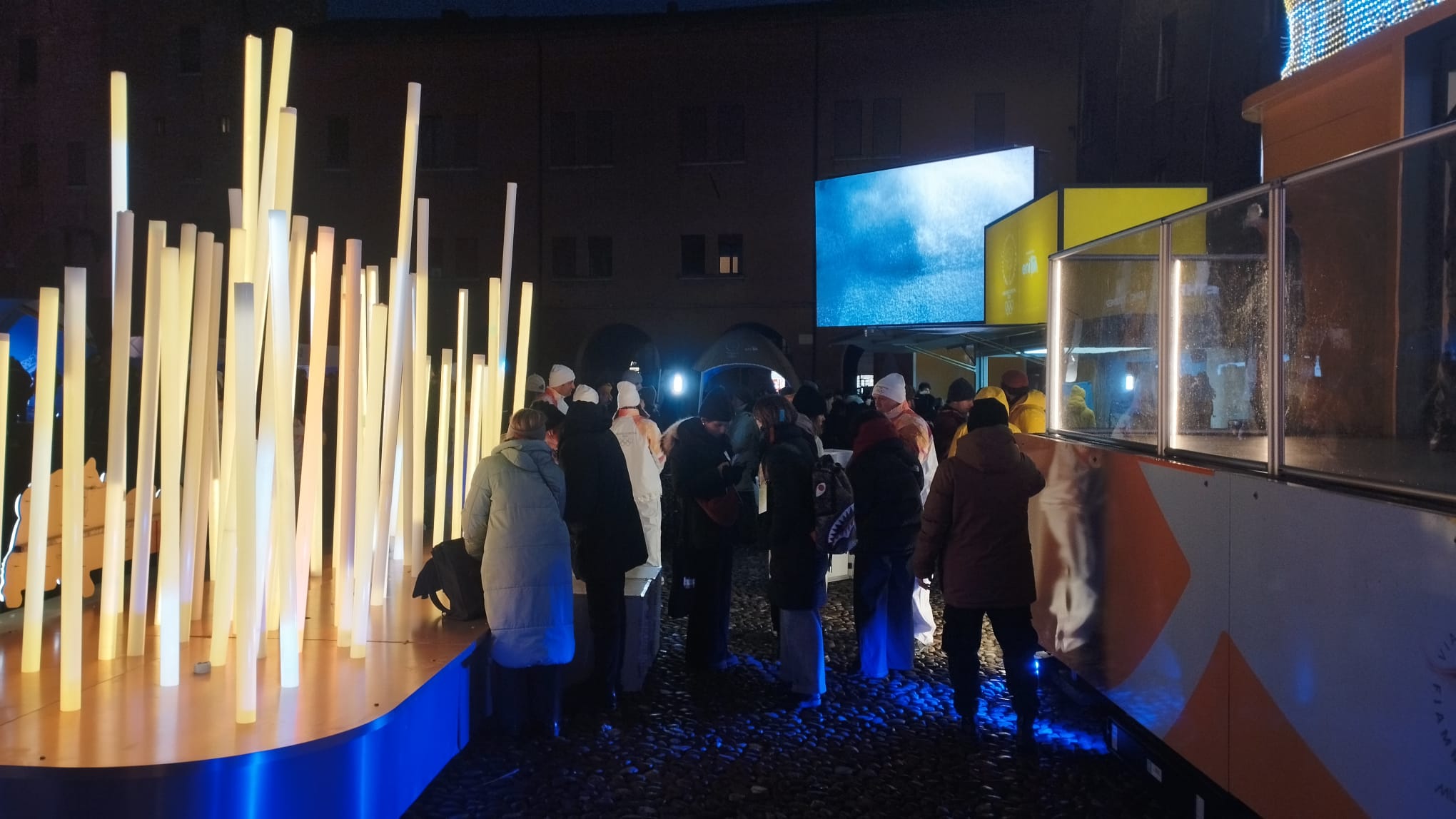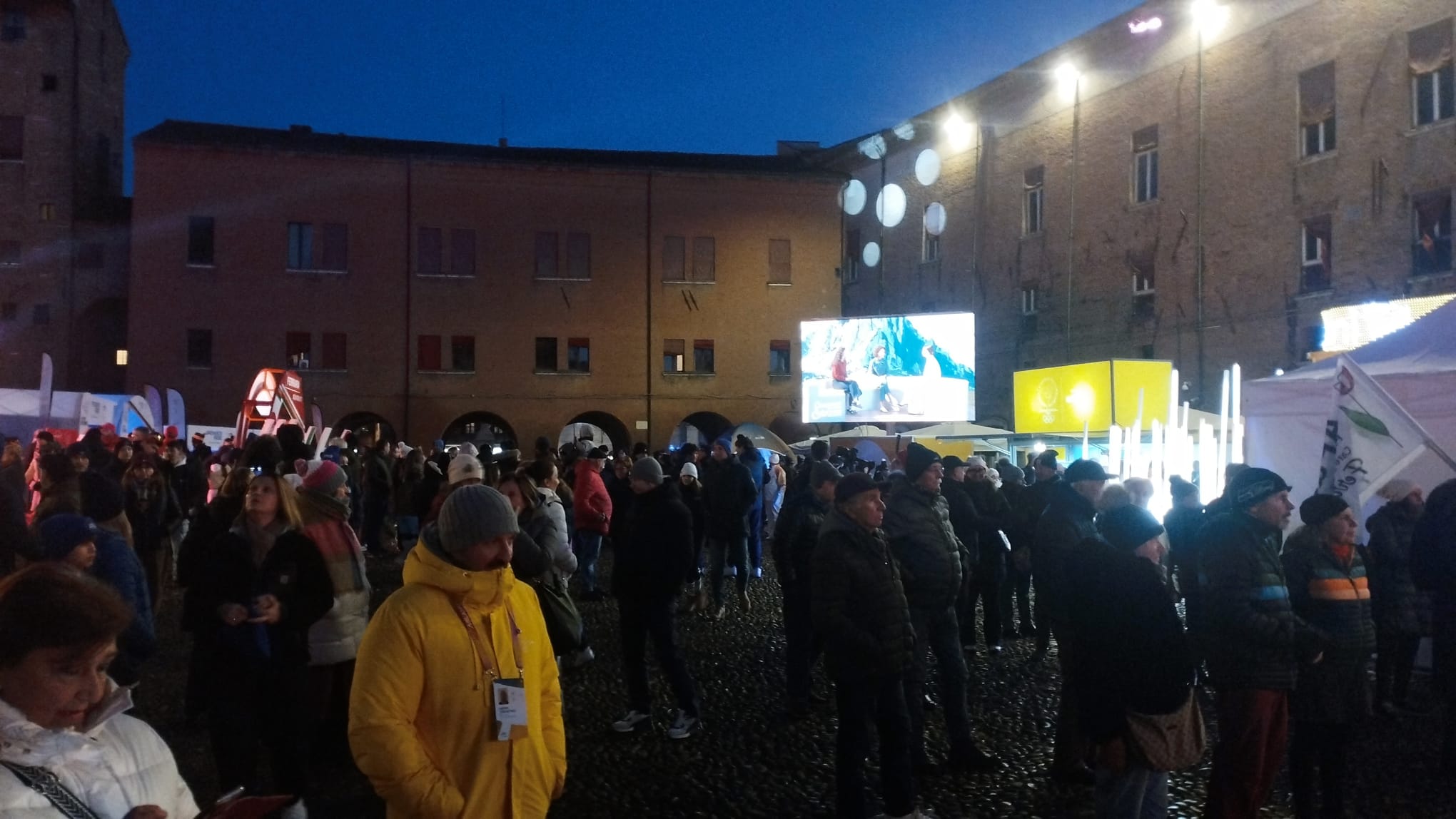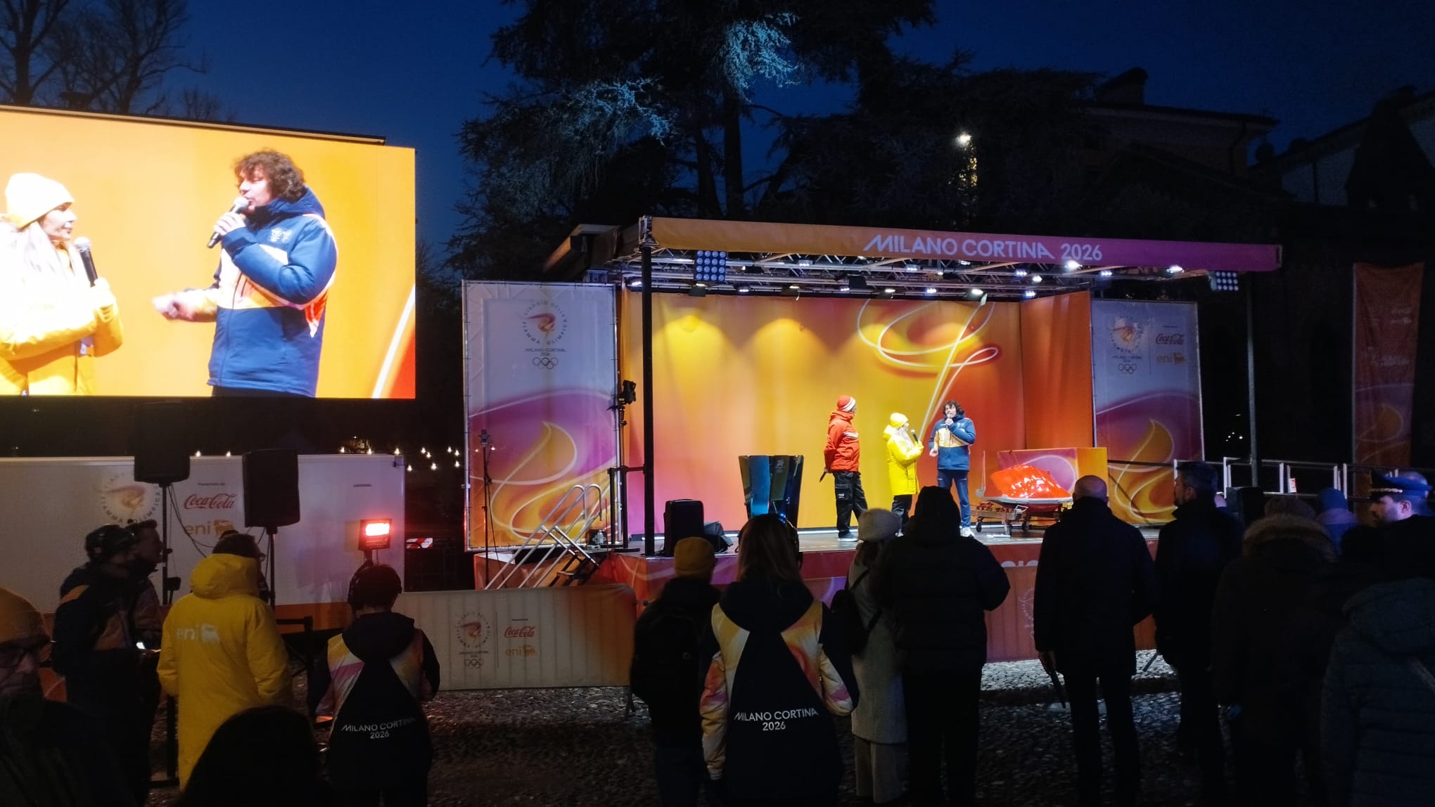 Ma la festa era cominciata molto prima. Già dalle 17 piazza Castello si era trasformata in una vera City Celebration, con un Villaggio Olimpico di 300 metri quadrati animato dagli sponsor Coca-Cola ed Eni. Stand esperienziali dedicati agli sport invernali, realtà virtuale, animazione, musica, distribuzione di gadget e iniziative solidali hanno coinvolto famiglie, giovani e appassionati, in un clima di partecipazione diffusa. Alle 17.55 l’arrivo della Fiamma in città, con la partenza dei tedofori da via Pomposa, aveva già acceso l’entusiasmo lungo le strade.
