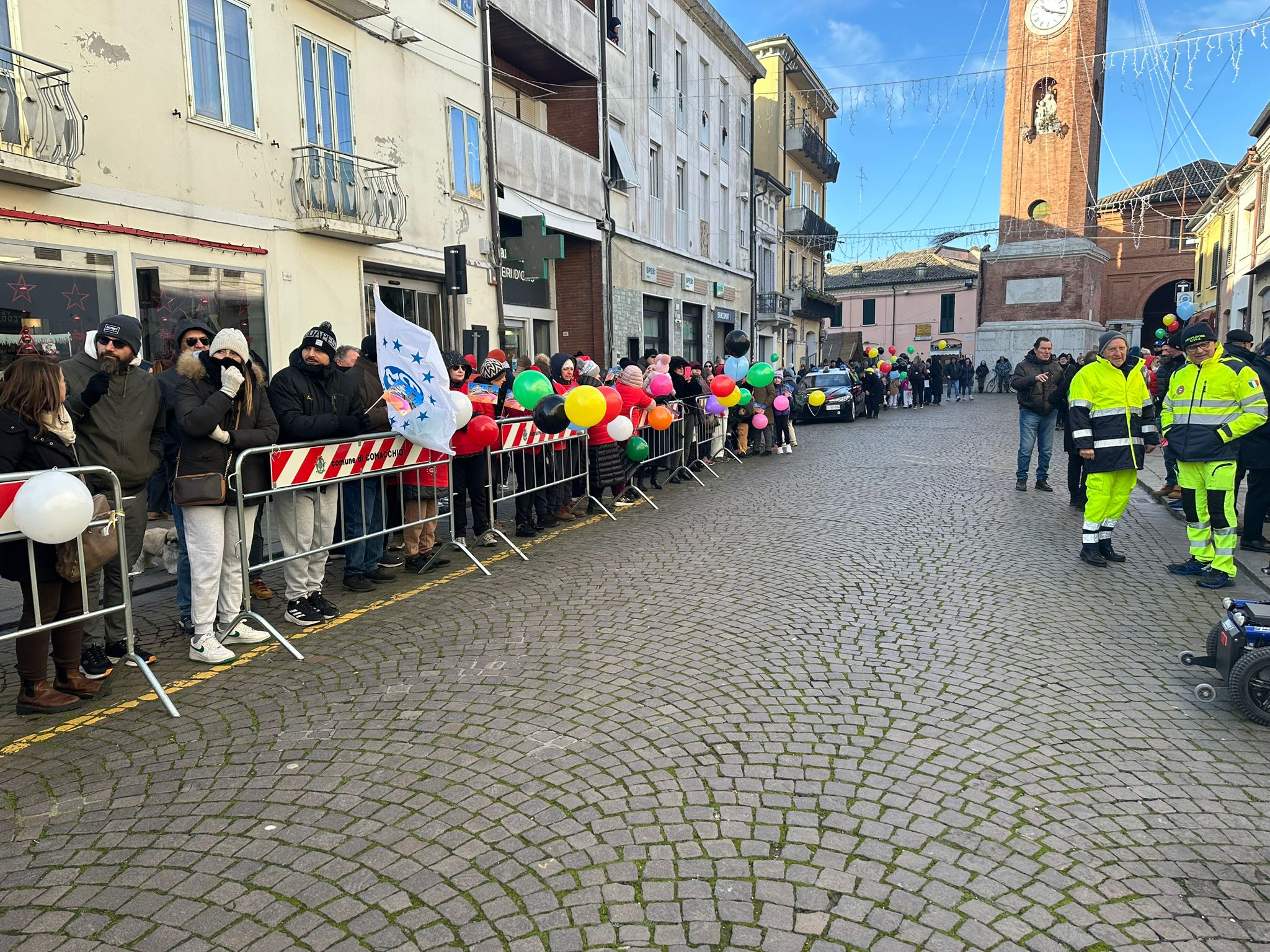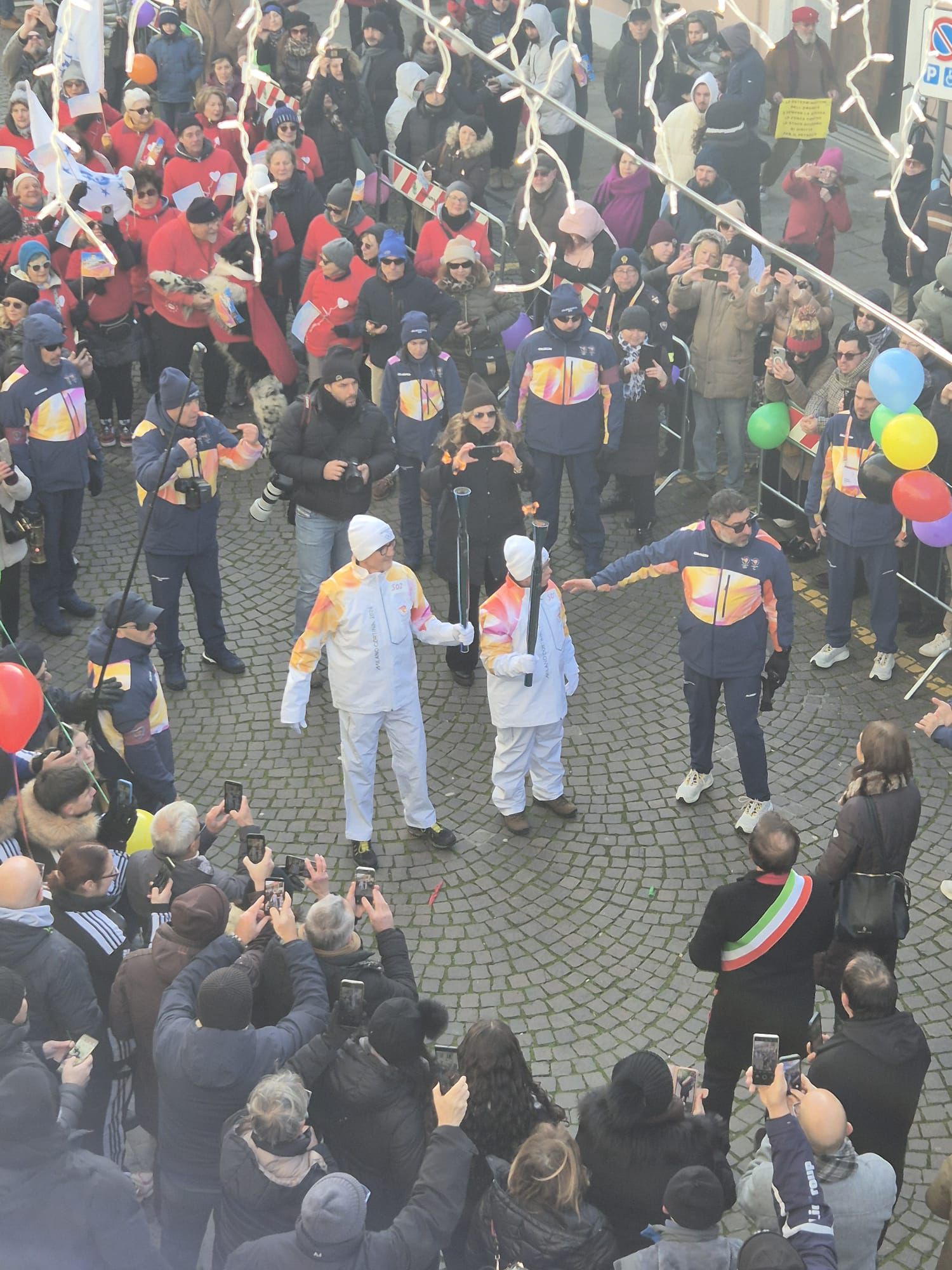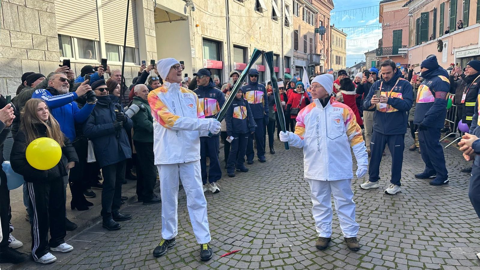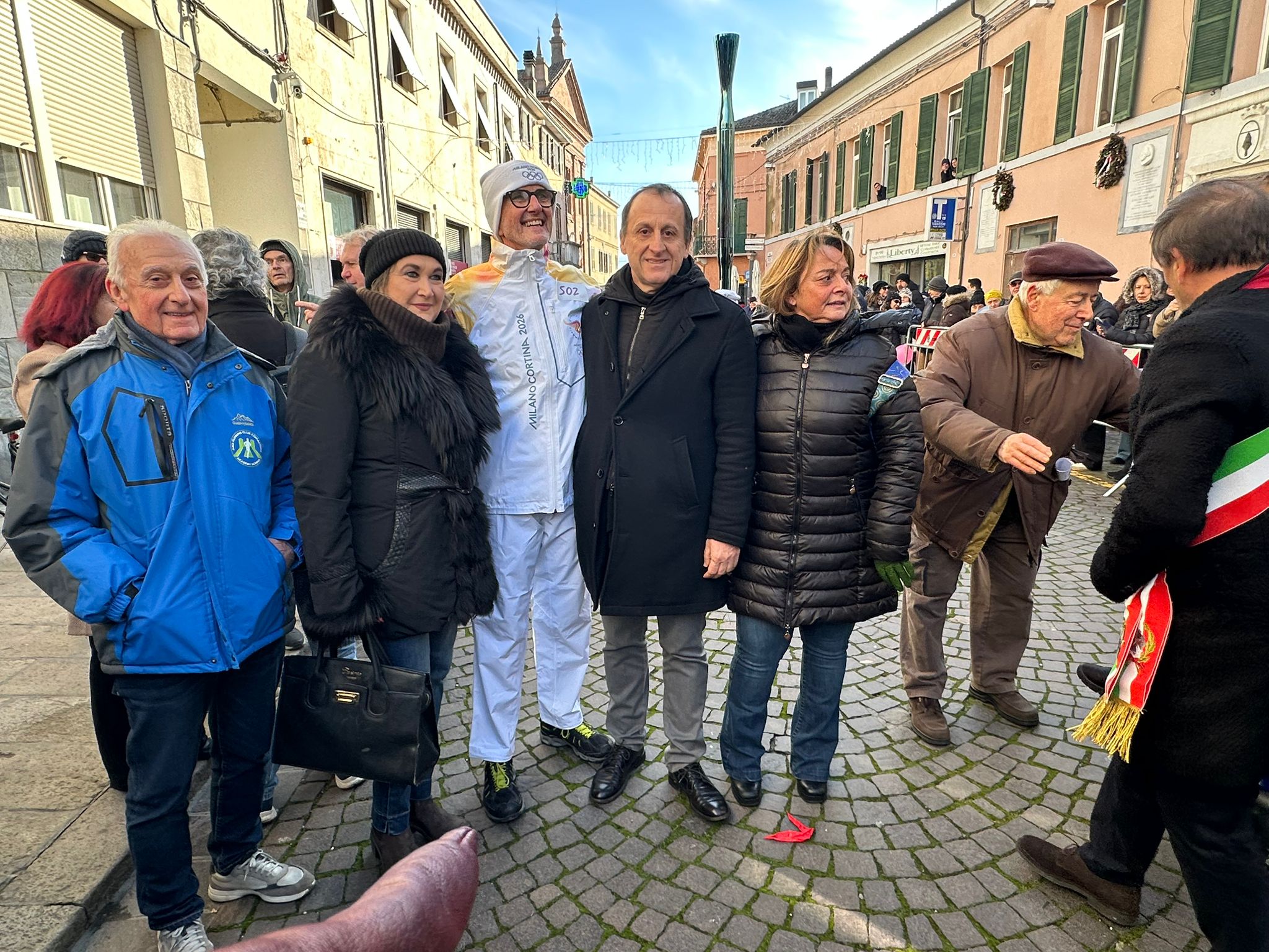 Comacchio. Grande festa per il passaggio della torcia olimpica e paraolimpica che accenderà a breve il braciere della XXV edizione dei Giochi Olimpici invernali che si terranno a Milano e a Cortina d’Ampezzo, dal 6 al 22 febbraio.