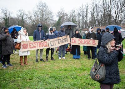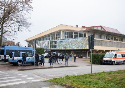 Oltre un centinaio di persone si sono ritrovate davanti all’impianto sportivo: residenti e proprietari degli appartamenti della Torre B, associazioni, attivisti, consiglieri comunali di opposizione e cittadini solidali. Lo sgombero è avvenuto in maniera tranquilla, sotto il controllo di tre camionette del Reparto Mobile della Polizia di Stato. Nessun momento di tensione aperta, ma un clima rimasto comunque teso per tutta la durata del presidio.
