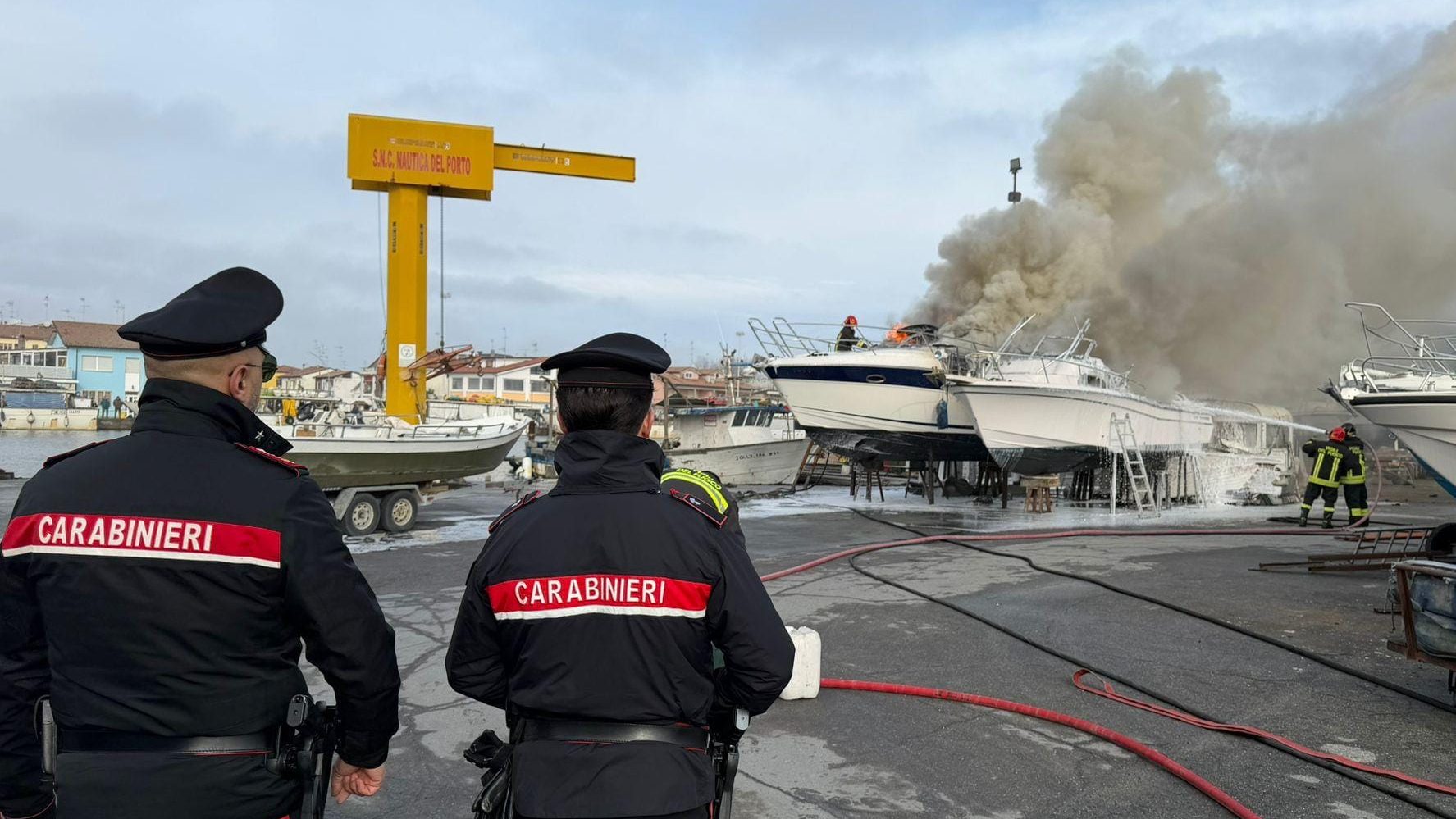 Lido degli Estensi. Attimi di apprensione oggi – domenica 25 gennaio – intorno alle ore 14.15 in via Cagliari, a Lido degli Estensi, dove una pattuglia della stazione dei carabinieri è intervenuta presso il rimessaggio “Nautica del Porto” per un incendio che ha interessato un natante.