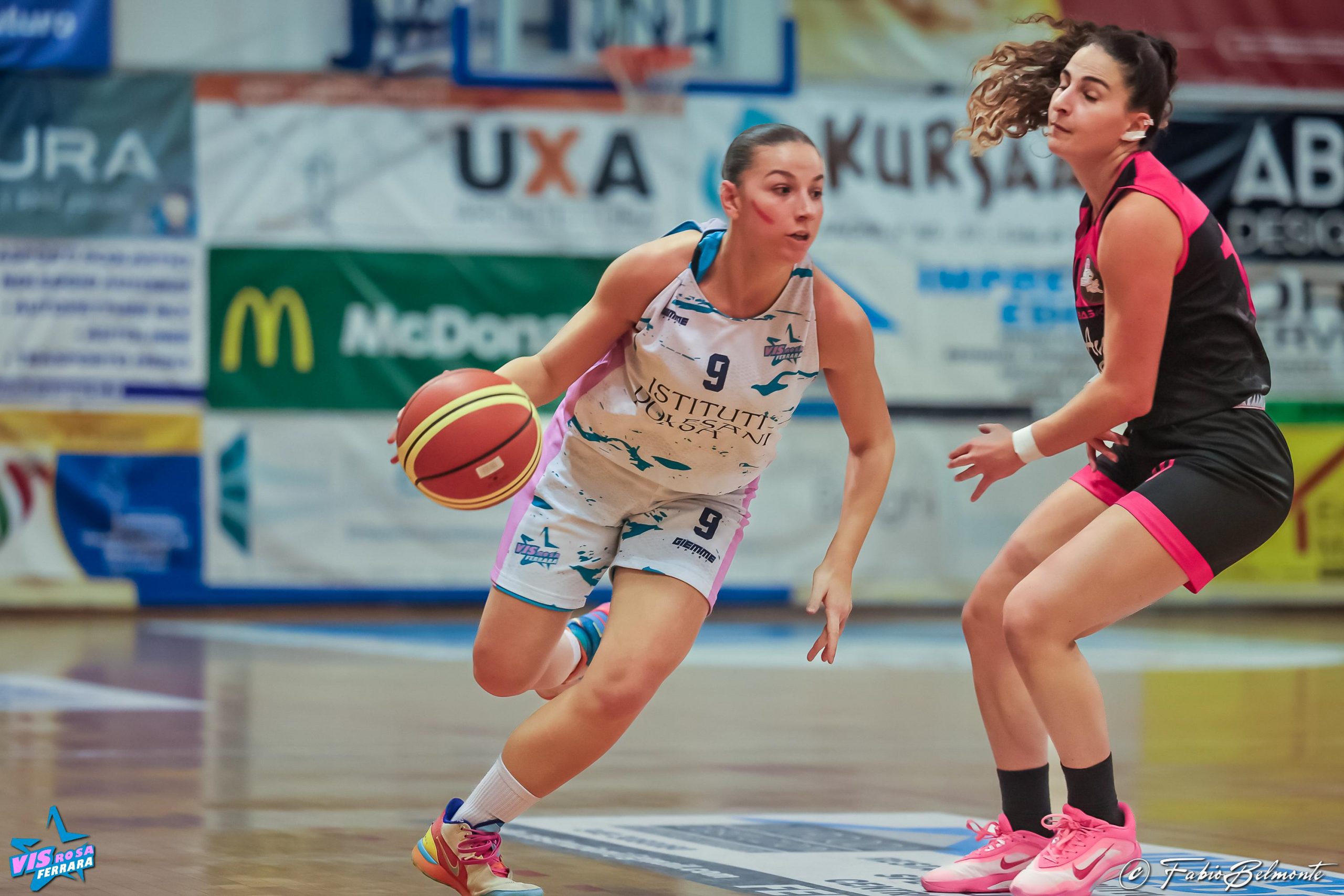 Partita intensa, e a tratti entusiasmante, quella tra le biancazzurre e la capolista Fortitudo Bologna. I primi due quarti sono da dimenticare per la Vis Rosa: la Effe approfitta delle difficoltà ferraresi e mette la gara in discesa (38-32). Dagli spogliatoi esce un’altra Istituti Polesani: non mancano intensità e coraggio contro un’avversaria di valore, mostrando un atteggiamento del tutto diverso rispetto alla frazione iniziale. Il tabellone premia la Fortitudo (77-61), ma lascia sensazioni positive in casa biancazzurra.