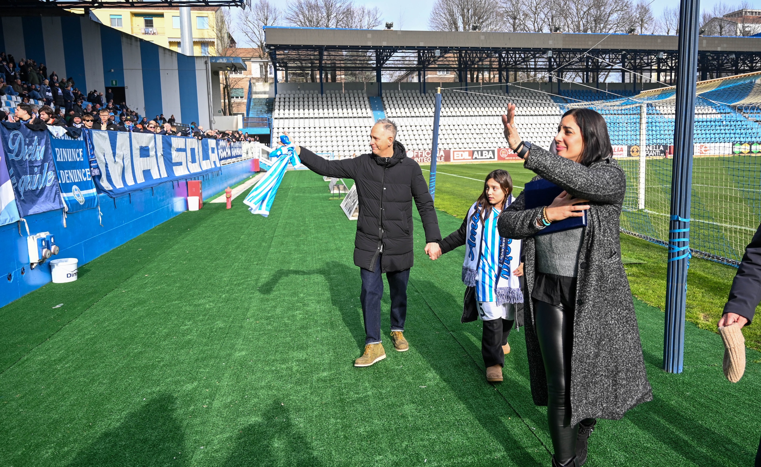 La cronaca. Ad aprire il pomeriggio del Paolo Mazza è il ricordo di Nicolas Giani, ex capitano della Spal scomparso lunedì scorso (2 febbraio) a 39 anni. Per lui, la Ovest disegna una coreografia che accoglie le squadre in campo: centinaia di cartoncini bianchi e azzurri a creare il numero cinque e lo striscione “Nicolas Giani, capitano, uomo eterno” ai piedi della curva.