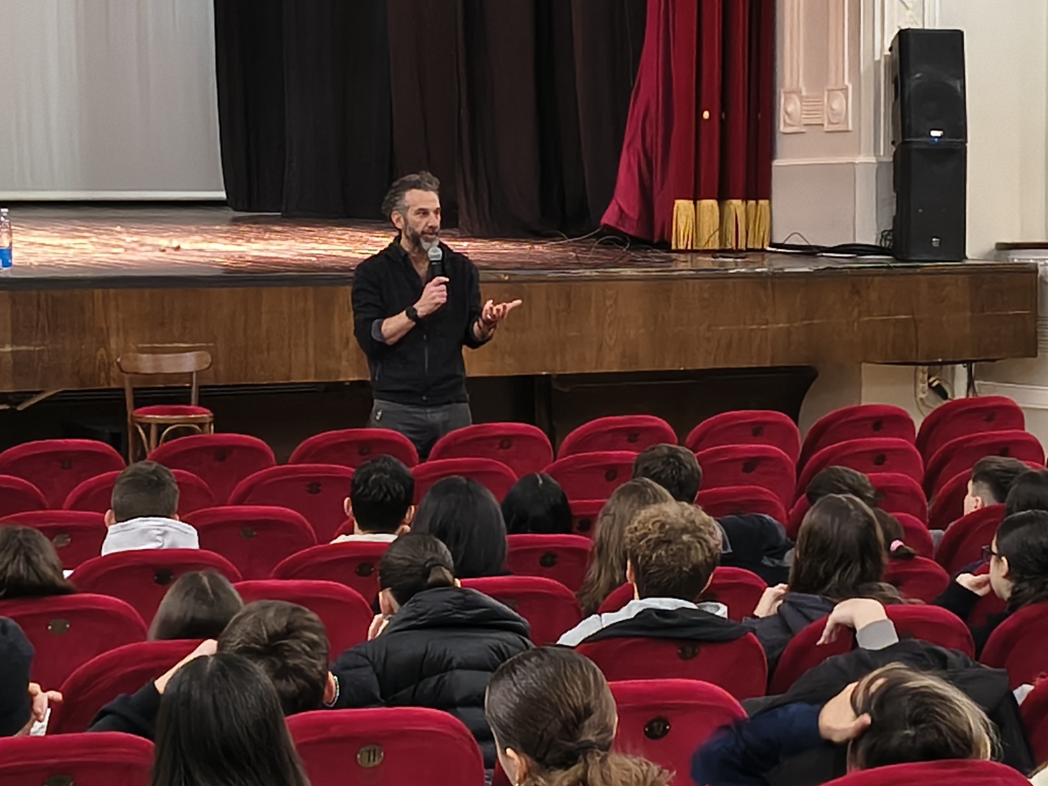 Lo sceneggiatore, regista, scrittore e critico cinematografico, in due distinti momenti, ha approfondito il lavoro svolto in aula dagli studenti delle classi terze sul film “The Quiet Girl” e dagli alunni delle classi prime sulla pellicola “Les choristes – I ragazzi del coro”. I giovanissimi sono stati accompagnati un viaggio nel cinema, scoprendo che «dietro le quinte di un film ci sono tanti lavori e persone che contribuiscono a creare la magia».