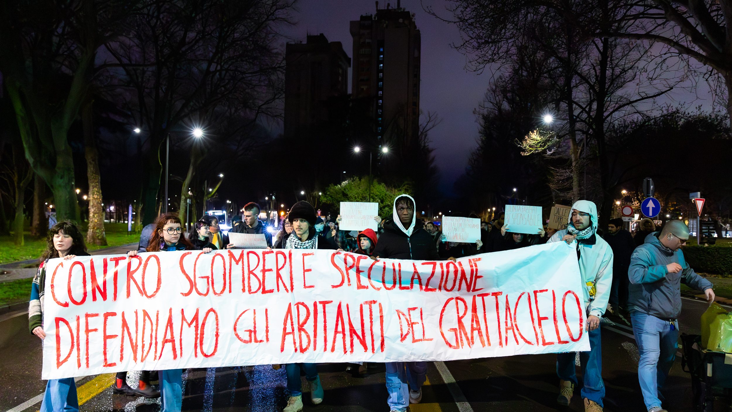 Prima che il corteo si muovesse verso viale Cavour, il microfono è passato ad Adam Atik di Cittadini Del Mondo confidando che molte persone frequentanti l’associazione hanno comprato casa al grattacielo negli ultimi anni, senza nascondere però alcune perplessità su come siano potute avvenire le compravendite degli immobili se già si sapeva che molti impianti non erano a norma. “Se appunto c’erano problemi di abitabilità, come sono potute avvenire le compravendite? Questo è proprio uno dei filoni su cui l’amministratore di questa città dovrebbe lavorare, ma che in questo istante non sta facendo”.