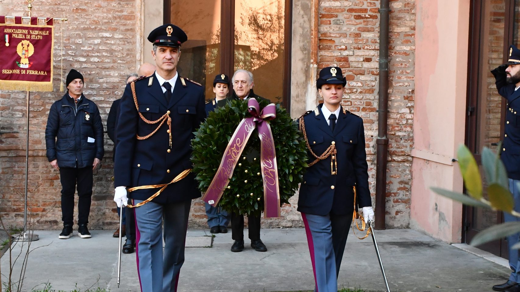 Alla cerimonia hanno preso parte il prefetto Massimo Marchesiello, il presidente della Provincia Daniele Garuti, l’assessora comunale Chiara Scaramagli, il presidente della Comunità ebraica Fortunato Arbib, il rabbino capo Luciano Caro, il direttore del Meis Amedeo Spagnoletto, padre Orazio Bruno in rappresentanza del vescovo, oltre ai vertici provinciali delle forze dell’ordine e a una delegazione dell’Associazione nazionale della Polizia di Stato.