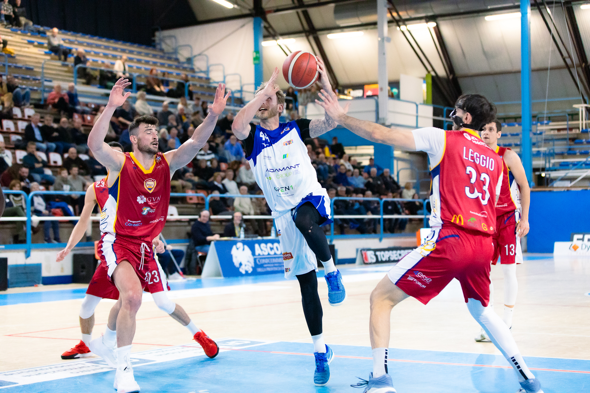 I biancorossi, su spinta ancora di Moffa, iniziano a trovare continuità offensiva: i due giochi da tre punti di Kupstas e Abati Toure valgono il 22-14. La retroguardia ospite è morbida, e l’Andrea Costa trova gli spazi per arrivare al ferro: sempre Moffa recupera palla e in contropiede regala agli imolesi il 35-24. L’Adamant lancia segnali di vita con Caiazza e Marchini dopo il +12 dell’ex Chessari, e il libero di Sackey manda tutti negli spogliatoi sul 39-31.