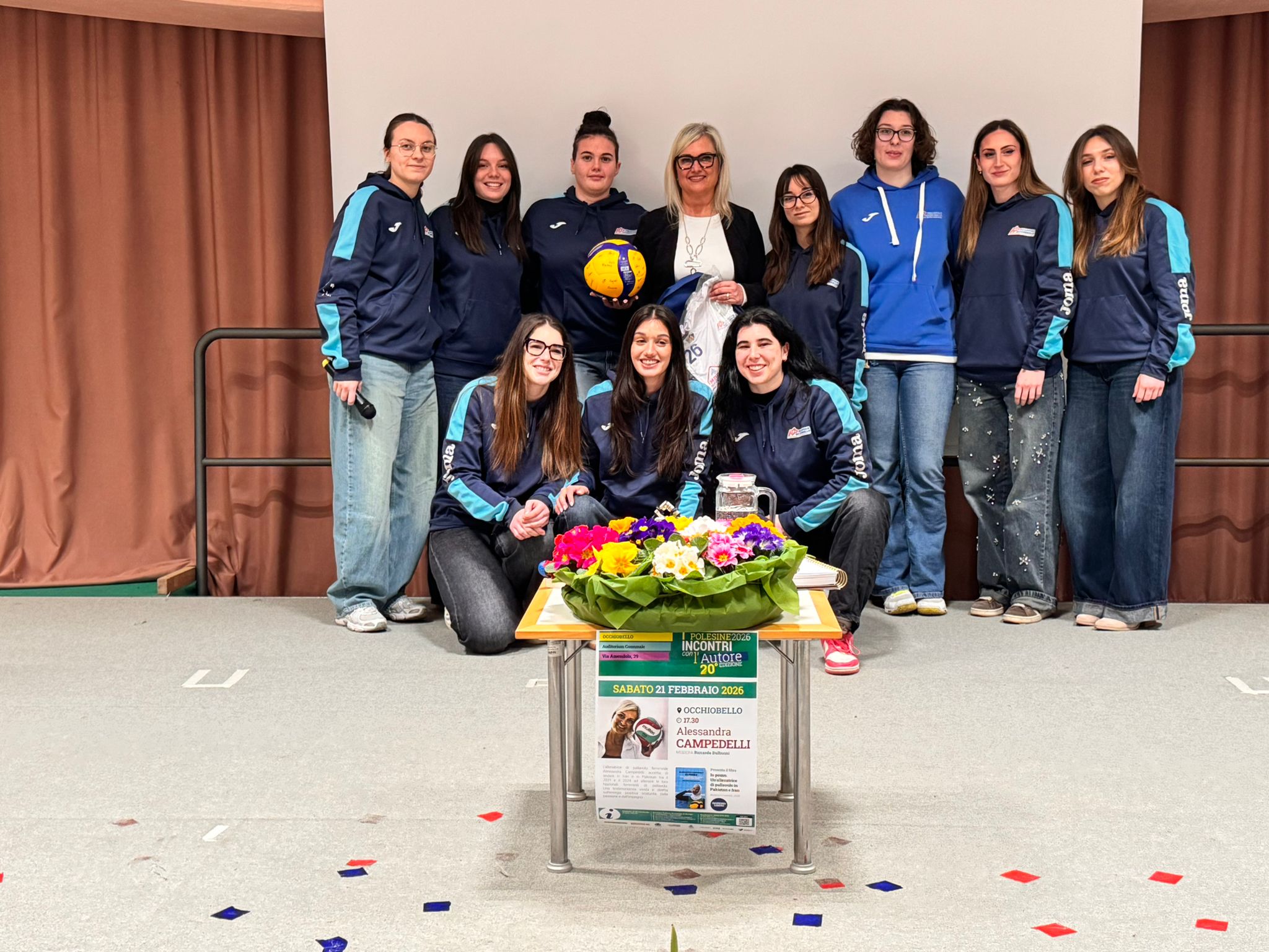 All’incontro, hanno partecipato le ragazze della squadra di prima divisione della Pallavolo Occhiobello che hanno posto con interesse domande ad Alessandra Campedelli sul tipo di allenamento adatto a quel contesto, ad esempio durante il ramadan, e sul lascito del suo lavoro così intenso e che l’ha emotivamente coinvolta al punto da scrivere un libro.