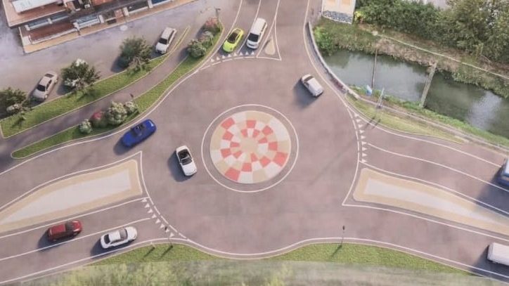 La nuova infrastruttura avrà un diametro complessivo di 31,6 metri e comprenderà un’isola centrale circolare sormontatile e una corona rotatoria con ingressi a due corsie. Lungo il perimetro esterno sarà inoltre realizzata una nuova linea di raccolta delle acque piovane con caditoie e verrà installato un nuovo impianto di illuminazione pubblica, con pali posizionati lungo il borso della rotatoria.