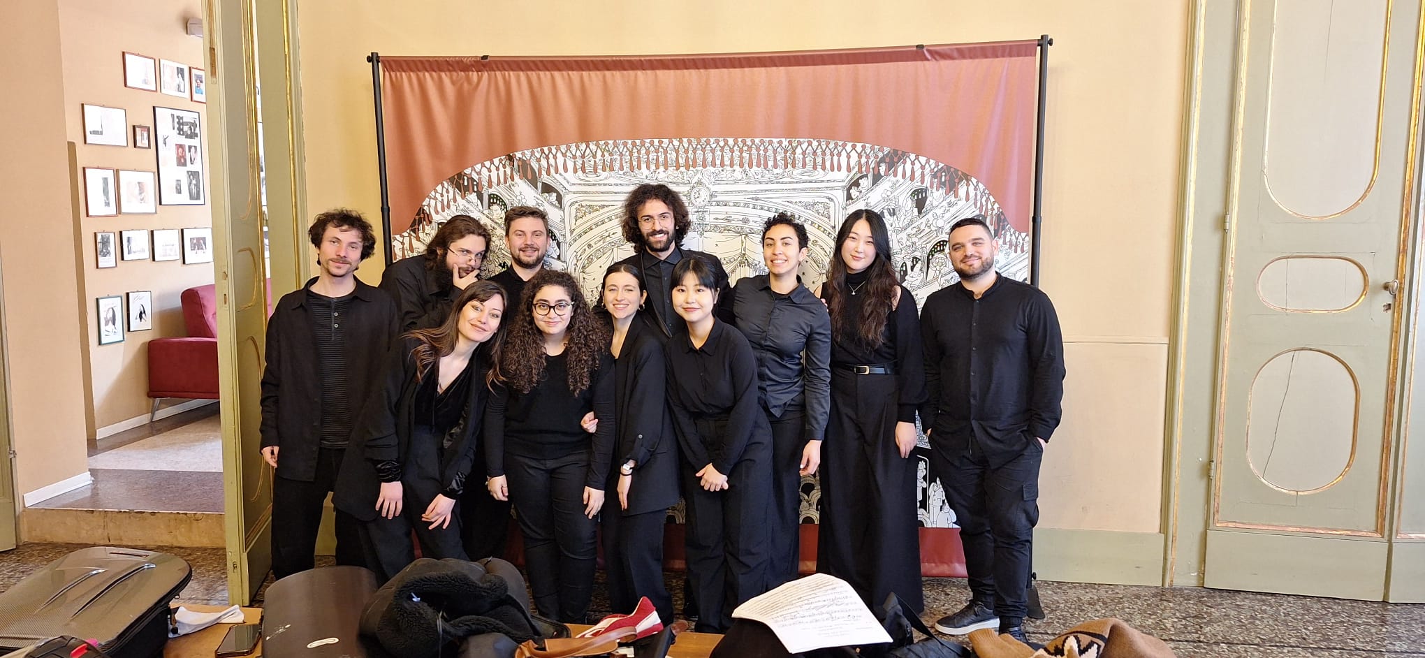 La suite vede impegnato un ensemble corposo, composto dai pianisti Pang Mingxin e Yu Cailin insieme a Chiara Marcellino flauto, Leonardo Zoncati clarinetto, Giovanni Ziparo alle percussioni e un quintetto d’archi formato da Margherita Caterina, Carlo Maria Sabatiello, Francesco Actis-Giorgietto, Kahila Franchini Suarez e Danny Vommaro.