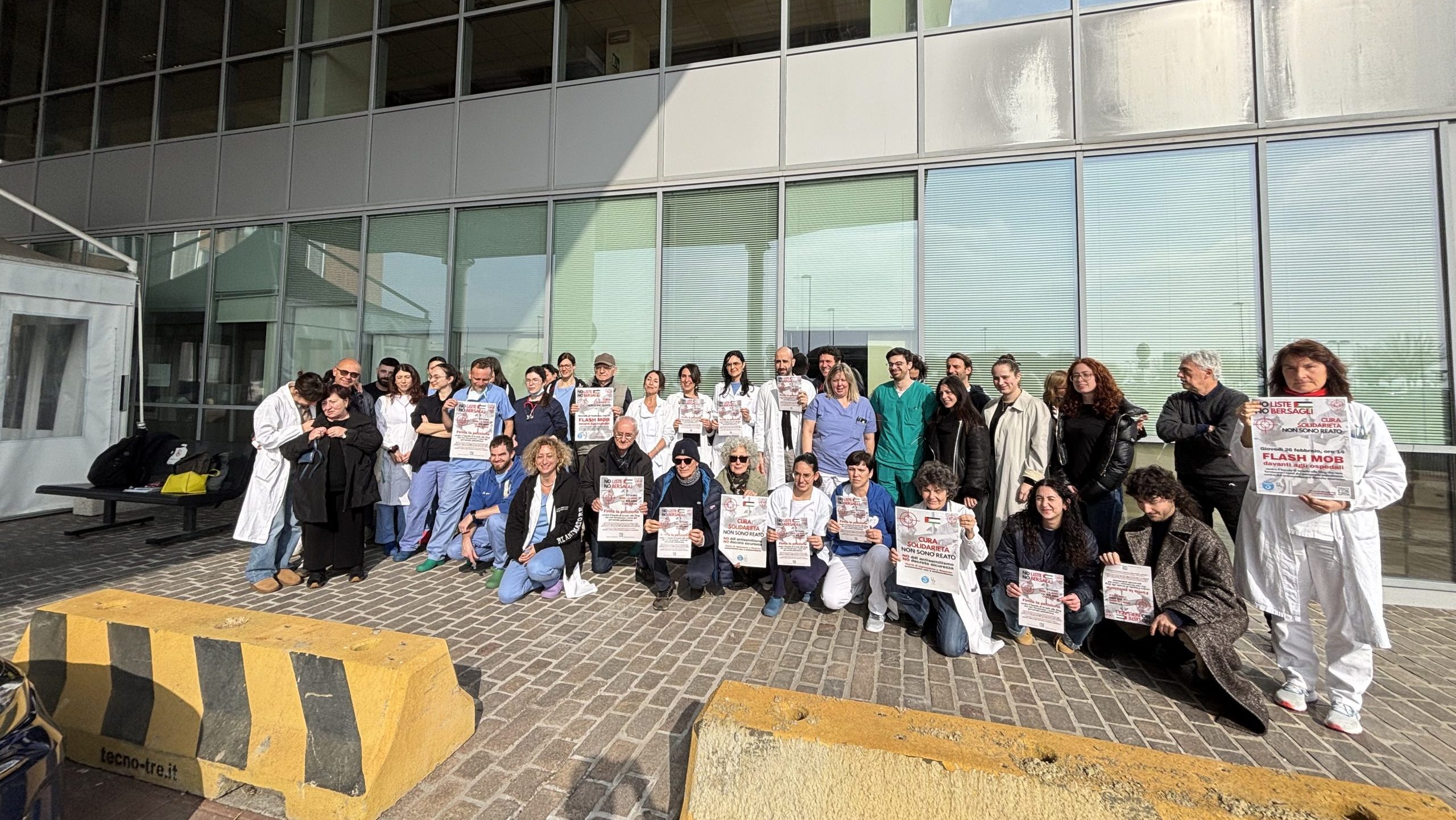 Una cinquantina le persone che ieri, 26 febbraio, hanno partecipato al flash mob davanti all’ospedale di Cona. Fra di loro medici, infermieri, psicologici, tecnici e anche un nutrito gruppo di giovani specializzandi. Tutti concordi nell’affermare che “è una misura coercitiva quella che il governo israeliano sta infliggendo a 37 ong (organizzazioni non governative), fra cui Medici senza frontiere e Oxfam”.