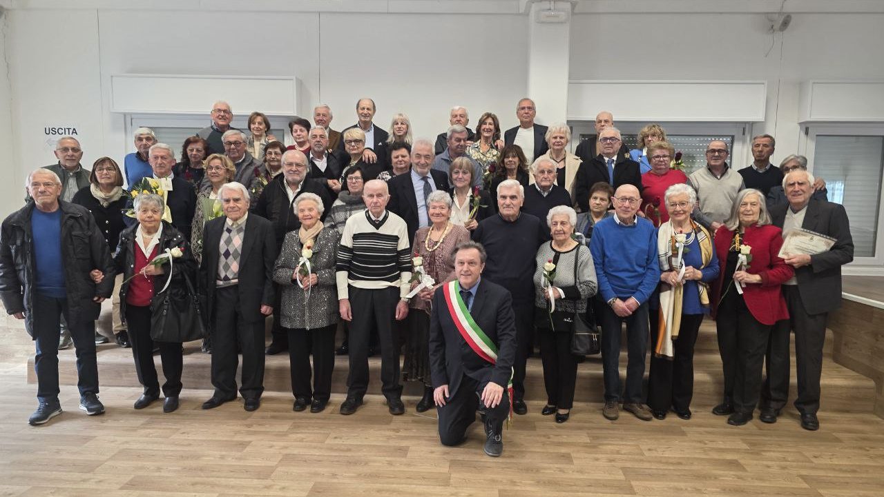 Alla presenza del sindaco Daniele Garuti e dell’assessore Patrizia Alberici, le coppie sono state chiamate una ad una sul palco e omaggiate con un attestato celebrativo, simbolo del traguardo raggiunto, e con un fiore donato a ciascuna sposa, gesto semplice ma carico di affetto e riconoscenza. Presenti anche i familiari delle coppie che hanno riempito la sala di applausi per il traguardo raggiunto. L’Auditorium si è riempito di sorrisi, ricordi condivisi e applausi, in un clima familiare e sentito da tutta la comunità.