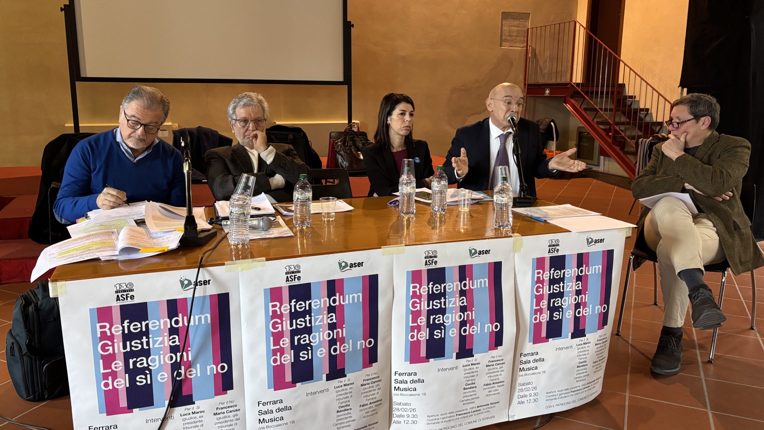 Attori protagonisti dell’agone dialettico – moderato dal giornalista Francesco Lavezzi e aperto dalla presidente di Assostampa Antonella Vicenzi – sono stati due magistrati e due avvocati, che hanno posto a confronto le ragioni di un fronte e dell’altro. Per il Sì sono intervenuti Luca Marini (giudice ed ex presidente tribunale di Ferrara) e Cecilia Bandiera (avvocata e presidente della Camera penale ferrarese). Per il No i relatori sono stati Francesco Maria Caruso (anche lui già presidente del tribunale Ferrara) e il legale Fabio Anselmo.