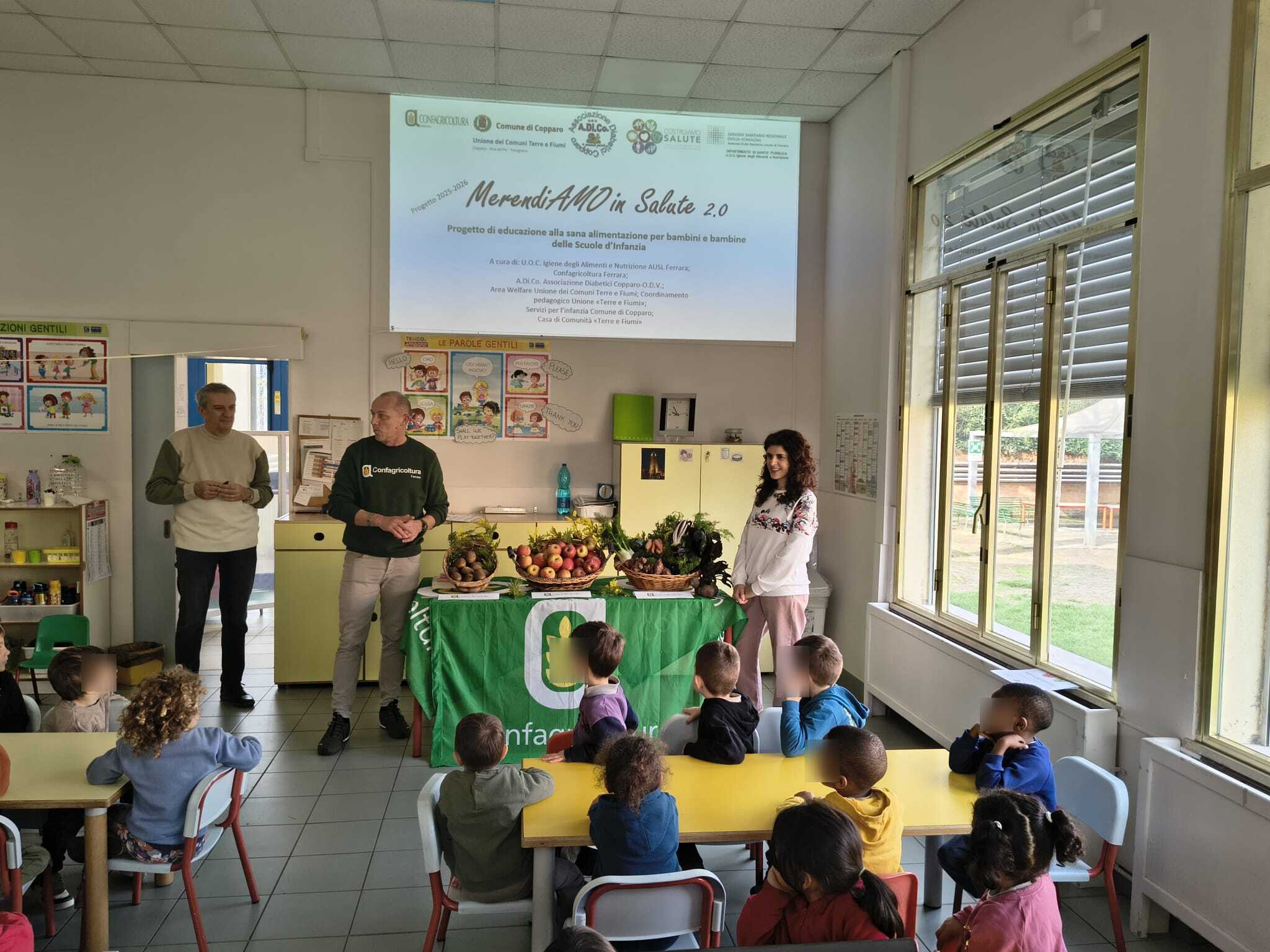 L’incontro, come sempre, si è concluso con una gustosa merenda a base di frutta. L’iniziativa, promossa dal Coordinamento Pedagogico Unione Terre e Fiumi in stretta collaborazione con Confagricoltura Ferrara, Scuole dell’Infanzia copparesi, Consorzio RES – U.O.C. Igiene degli Alimenti e Nutrizione, Associazione Diabetici Copparo (A.Di.Co), Casa della Comunità “Terre e Fiumi”, con il patrocinio del Comune, dell’Unione Terre e Fiumi, della Regione Emilia-Romagna, tornerà mercoledì 11 marzo con un altro appuntamento alla scuola dell’Infanzia “Gulinelli”.