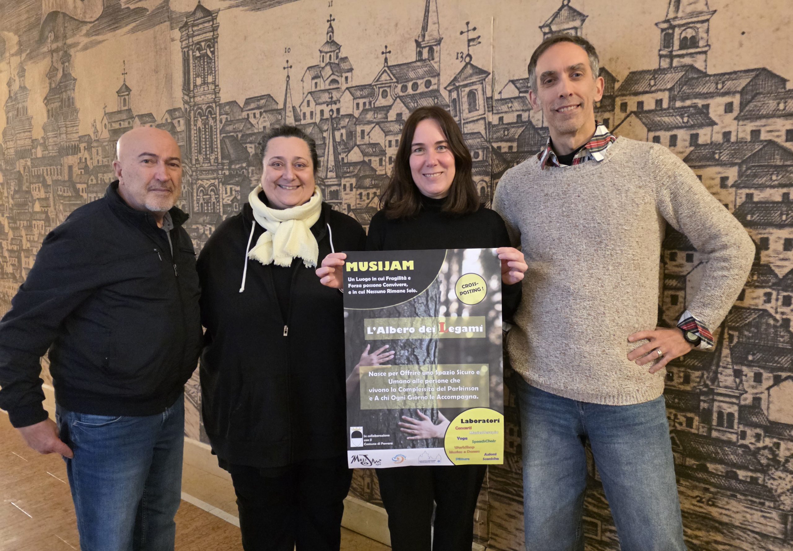 “Da anni collaboriamo con il Gruppo Estense Parkinson – ha sottolineato Marco Ferrazzi, vicepresidente di Musijam -. L’albero dei legami significa fare un pensiero in più: legarsi al caregiver e a tutti quei familiari che vivono l’esperienza di avere un familiare che lotta contro la patologia. Al termine di questi 2 percorsi paralleli tutti insieme effettueranno una performance teatrale, e i malati potranno fare anche da caregiver”.
