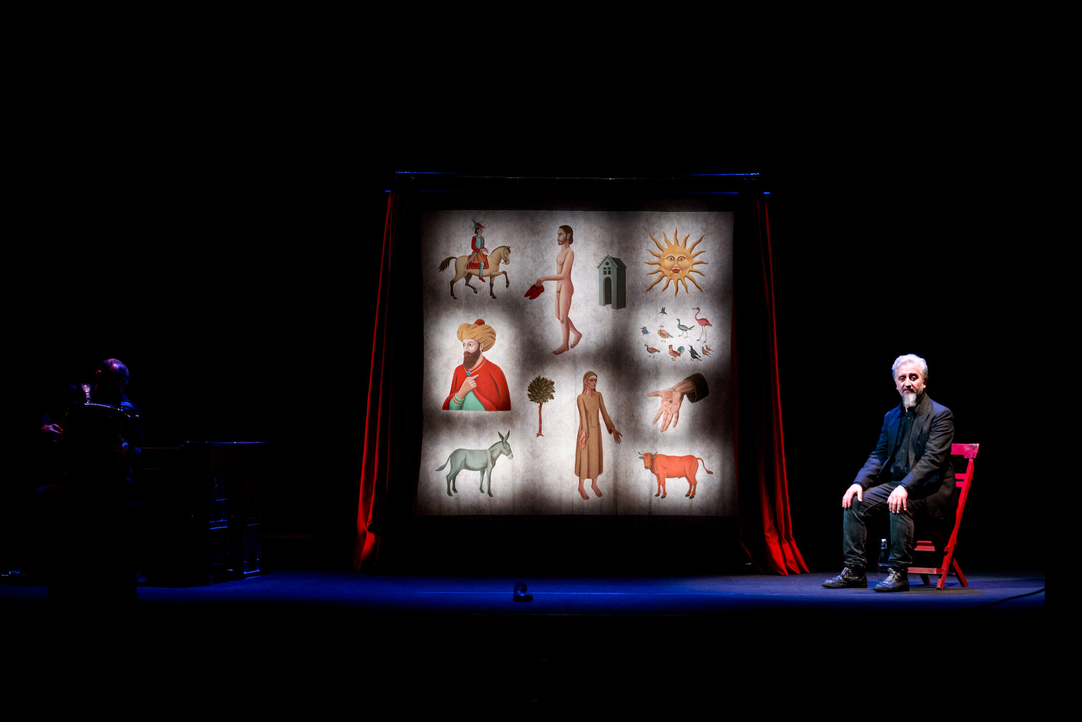 Terzo capitolo di un percorso teatrale avviato con Laika (2015) e Pueblo (2017), con questa nuova creazione Celestini prosegue la propria indagine sulle periferie contemporanee. In scena, accanto all’artista, la fisarmonica di Gianluca Casadei, collaboratore storico dell’artista, la voce di Agata Celestini e le immagini dipinte di Franco Biagioni.