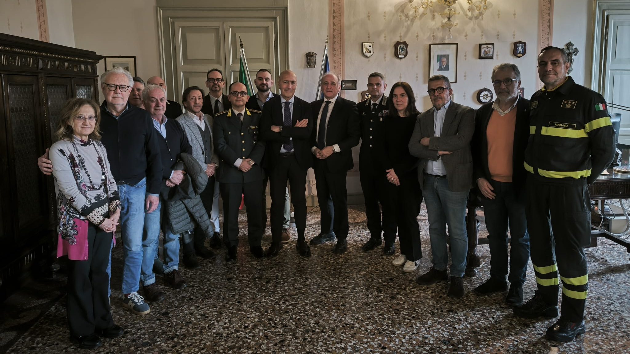 Firmato il protocollo d’intesa per la prevenzione dell’illegalità e alla tutela della sicurezza pubblica all’interno e nelle adiacenze degli esercizi pubblici e delle discoteche della provincia di Ferrara che definisce un rinnovato sistema di sinergie tra attori pubblici e privati. La cerimonia di sottoscrizione è avvenuta al palazzo del Governo con l’accordo siglato dal prefetto Massimo Marchesiello, dai vertici provinciali delle Forze di Polizia e dei Vigili del Fuoco, dai Comuni di Ferrara, Cento e Comacchio e dai rappresentanti delle Associazioni di categoria del settore, insieme alla Camera di Commercio.