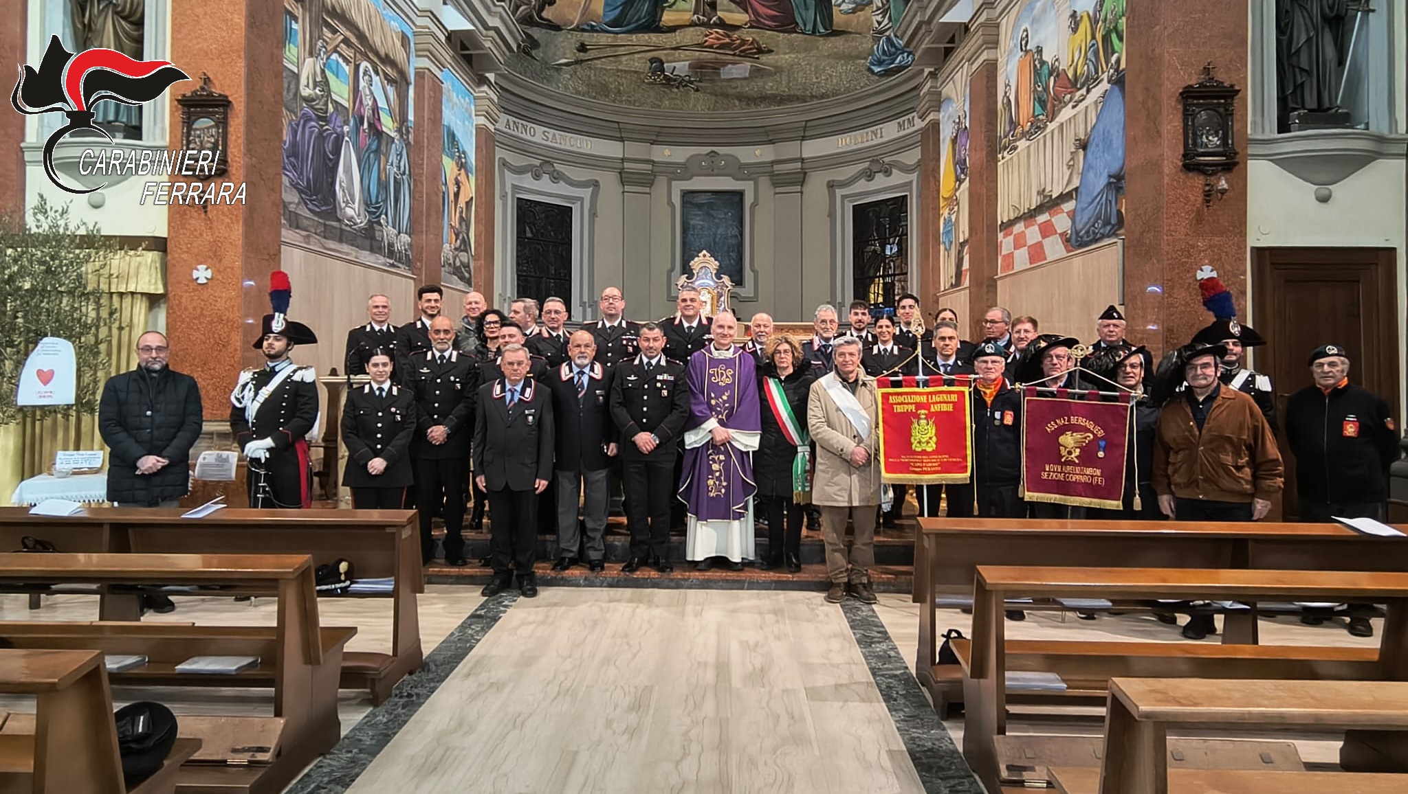 Un rito particolarmente sentito dai militari dell’Arma, condiviso con le istituzioni e la comunità. Alla messa, officiata dal cappellano militare della Legione Carabinieri Emilia-Romagna, don Luca Giuliani, insieme al parroco don Daniele Panzeri hanno partecipato il vicesindaco di Copparo Bruna Cirelli, il presidente del consiglio comunale Lorenzo Fiammanti, il comandante della Polizia Locale dell’Unione “Terre e Fiumi” Giulio Sinchetto, rappresentanti delle sezioni copparesi dell’Associazione Nazionale Carabinieri, dell’Associazione Nazionale Bersaglieri e dell’Associazione Lagunari Truppe Anfibie.