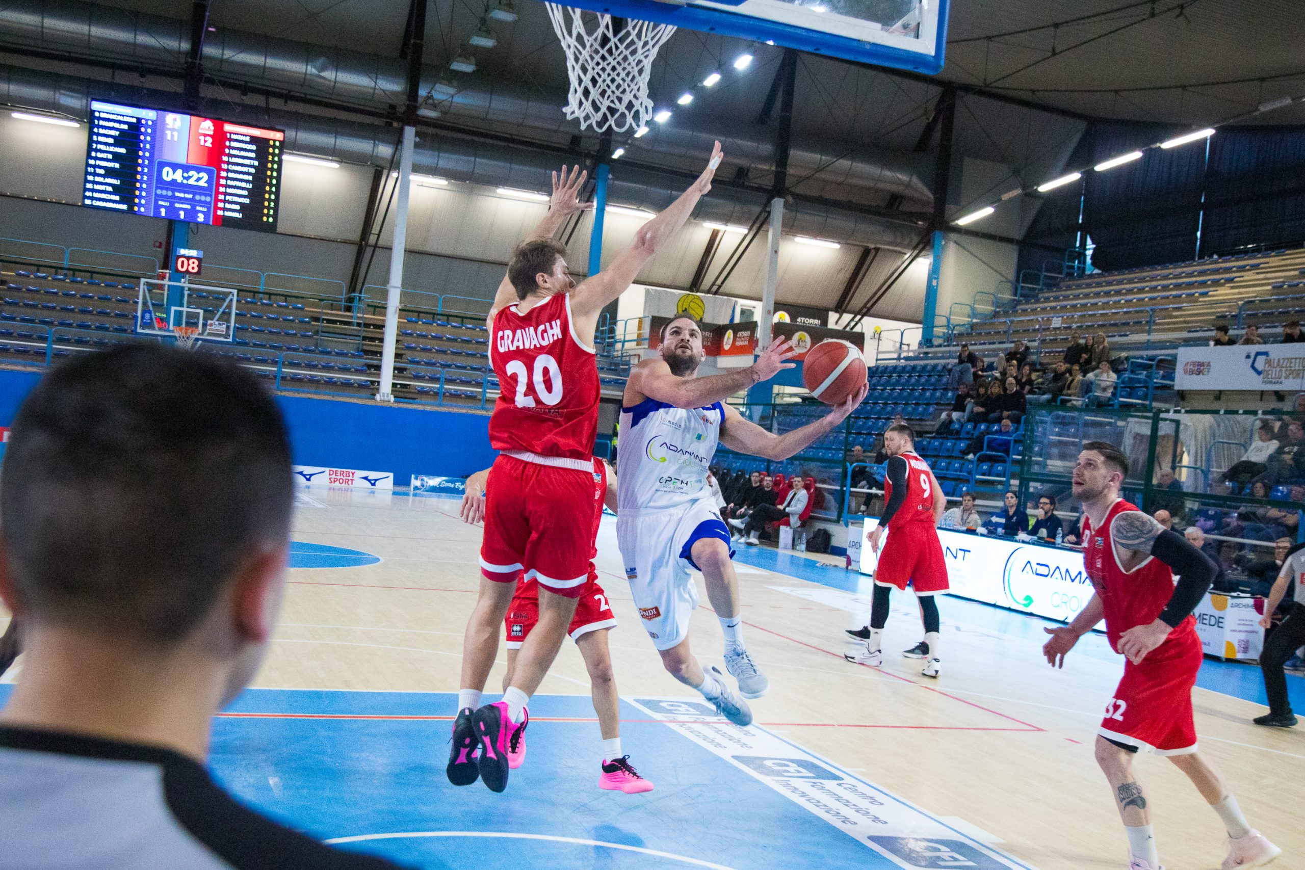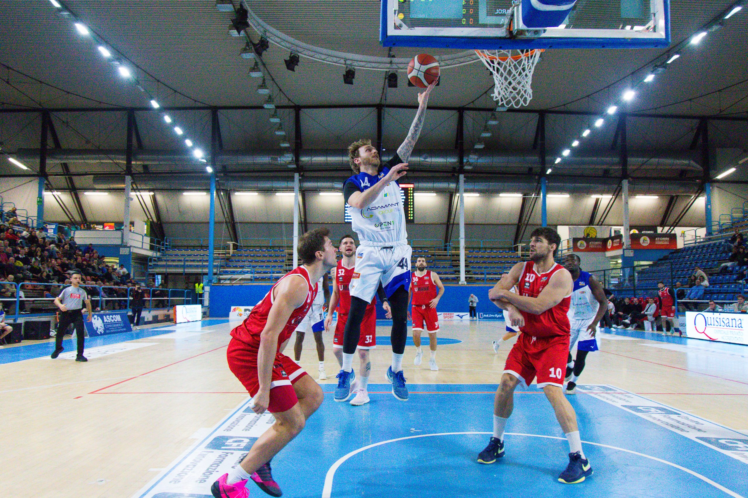 La palla è pesante in un avvio di supplementare molto tirato: Gatti segna dalla lunetta un libero, e sarà l’unico punto dell’Adamant nel mini tempo. Chiusi poco dopo si sblocca con il solito Bertocco, e l’Umana ritrova il vantaggio: i due canestri di Petrucci contro una difesa ferrarese senza più carburante mandano i titoli di coda. I toscani rimontano ventidue punti e vincono 80-91.