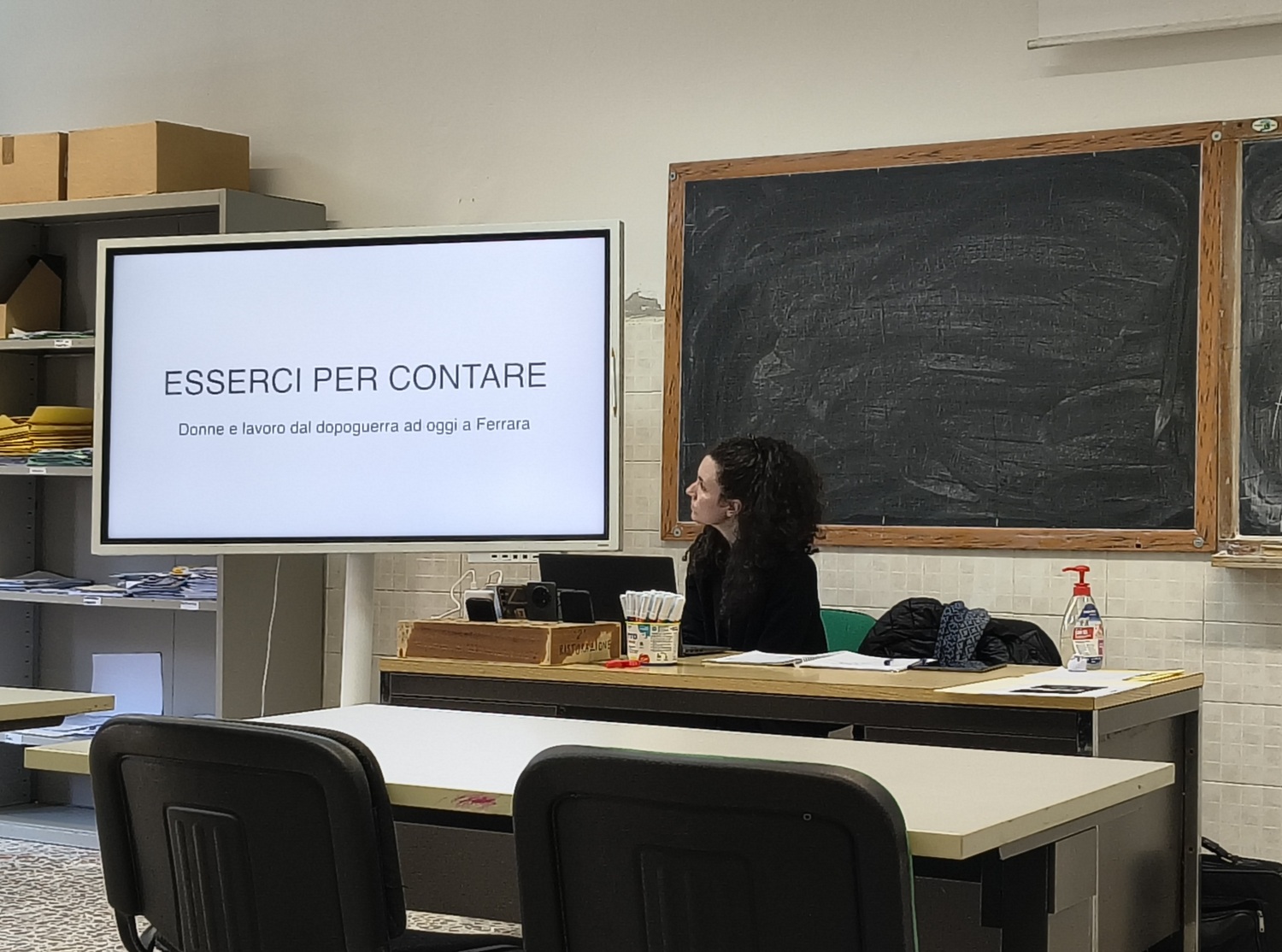 Nella mattinata di lunedì 23 marzo, gli studenti sono stati coinvolti in un interessante laboratorio scaturito dalla visione del cortometraggio “Esserci per contare. Donne e lavoro dal dopoguerra ad oggi a Ferrara”, pellicola curata dalla regista Silvia Degani e prodotta dal Coordinamento Donne Spi Cgil di Ferrara, che raccoglie interviste a donne(studentesse, lavoratrici, pensionate, impegnate nella tutela dei diritti) per un viaggio intergenerazionale tra l’evoluzione della società nel tempo, storiche conquiste, aspettative e desideri per il futuro e disparità ancora presenti.