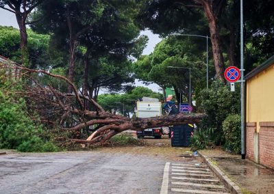 Rami ovunque anche lungo la Romea, con situazioni di pericolo segnalate in direzione di Ravenna e a Porto Garibaldi, dove il traffico è rimasto bloccato per circa un’ora per consentire di rimuovere rami e cartelli stradali finiti in mezzo alla carreggiata.