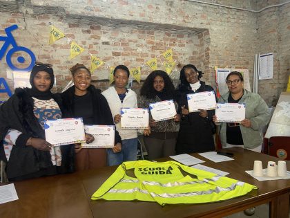 Presso il Punto Bici Fiab Ferrara aps, si è tenuta la consegna dei diplomi di “Provetta ciclista ferrarese” alle ragazze che hanno preso parte al corso “In Sella all’Autonomia”, progetto nato dalla “congiunzione astrale” tra Fiab Italia e il Centro Donna Giustizia che porta al centro della propria missione i valori di autonomia e integrazione.