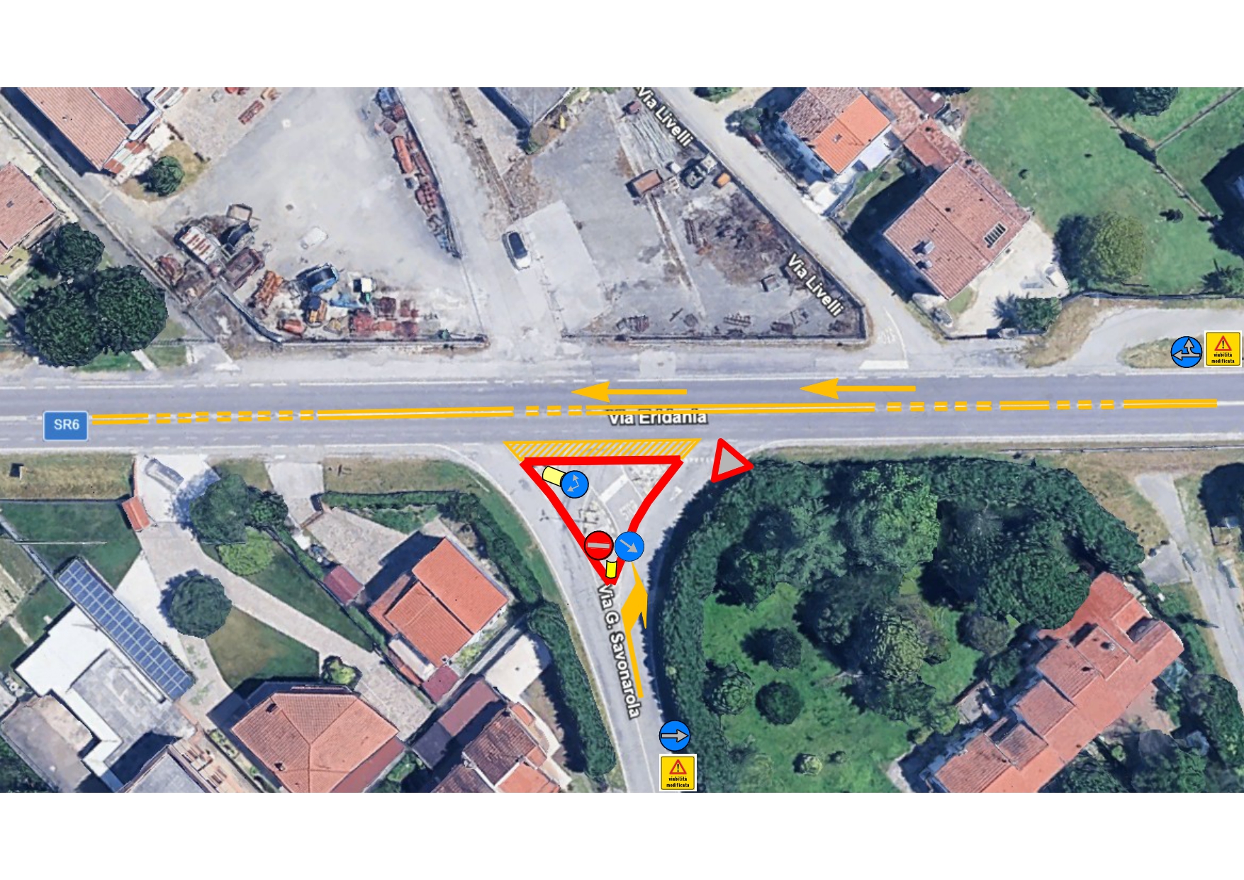 In pratica, non sarà più possibile per chi percorre l’Eridania, provenendo da Santa Maria Maddalena, svoltare a sinistra in via Savonarola, ma dovrà proseguire dritto ed entrare in paese da via Roma secondo tronco. Chi uscirà da via Savonarola potrà solo svoltare a destra verso Santa Maria Maddalena, ma non a sinistra in direzione Stienta. Chi proviene da Stienta potrà entrare in via Savonarola dalla via Eridania.