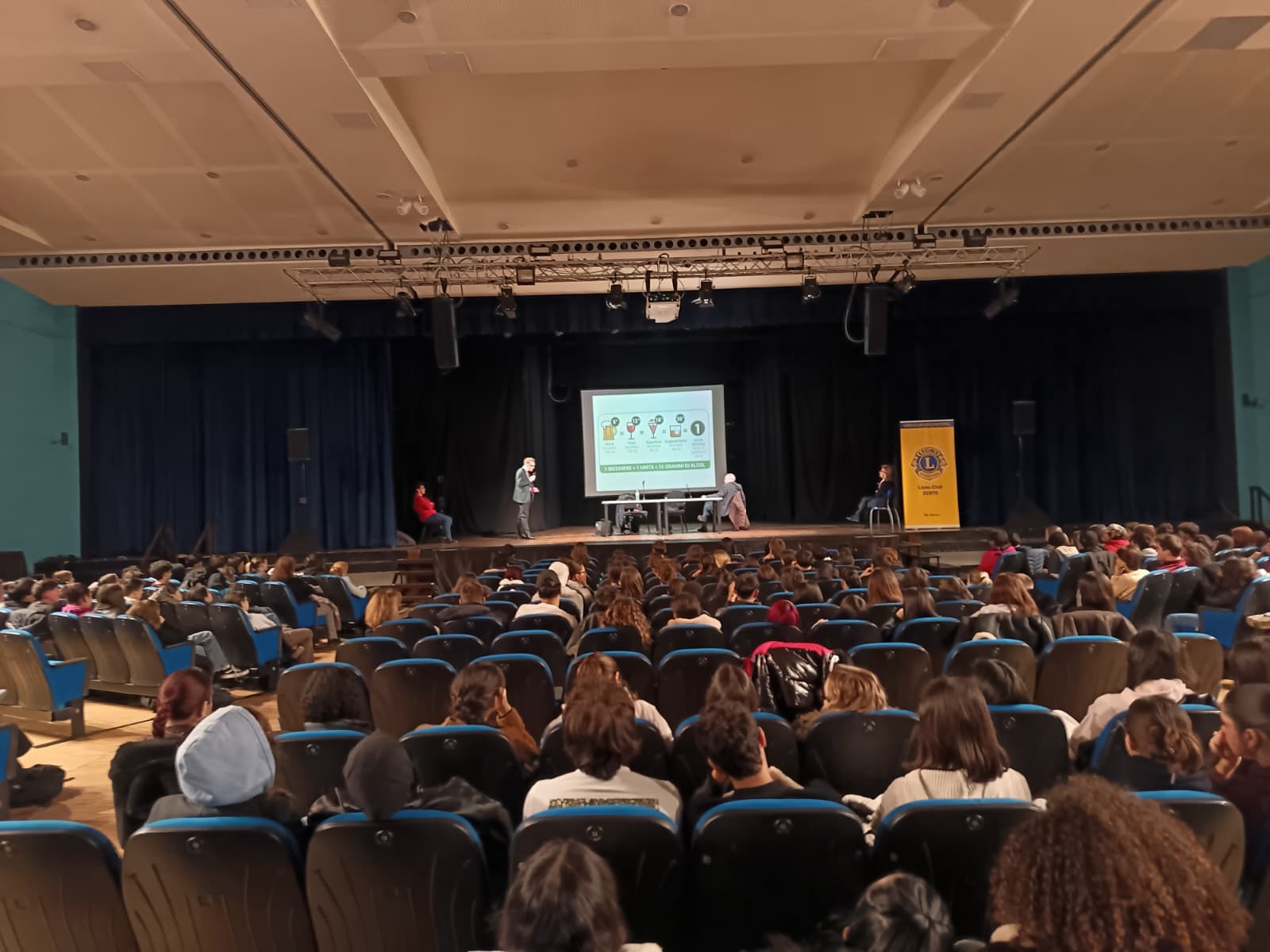 All’incontro hanno preso parte con grande attenzione 220 studenti, accompagnati dai loro insegnanti. I lavori sono stati aperti e coordinati da Marina Malagodi (presidente Lions Club Cento) e da Federico Lio (presidente Leo Club Cento), che hanno illustrato l’impegno costante dei Lions verso le nuove generazioni. La mattinata è poi entrata nel vivo con gli interventi tecnici di Fabio Caputo (specialista in patologie alcol-correlate), Vincenzo Monda (diabetologo e socio Lions), Marina Malagodi (anestesista) e Simona Rinieri (pediatra oncologa).