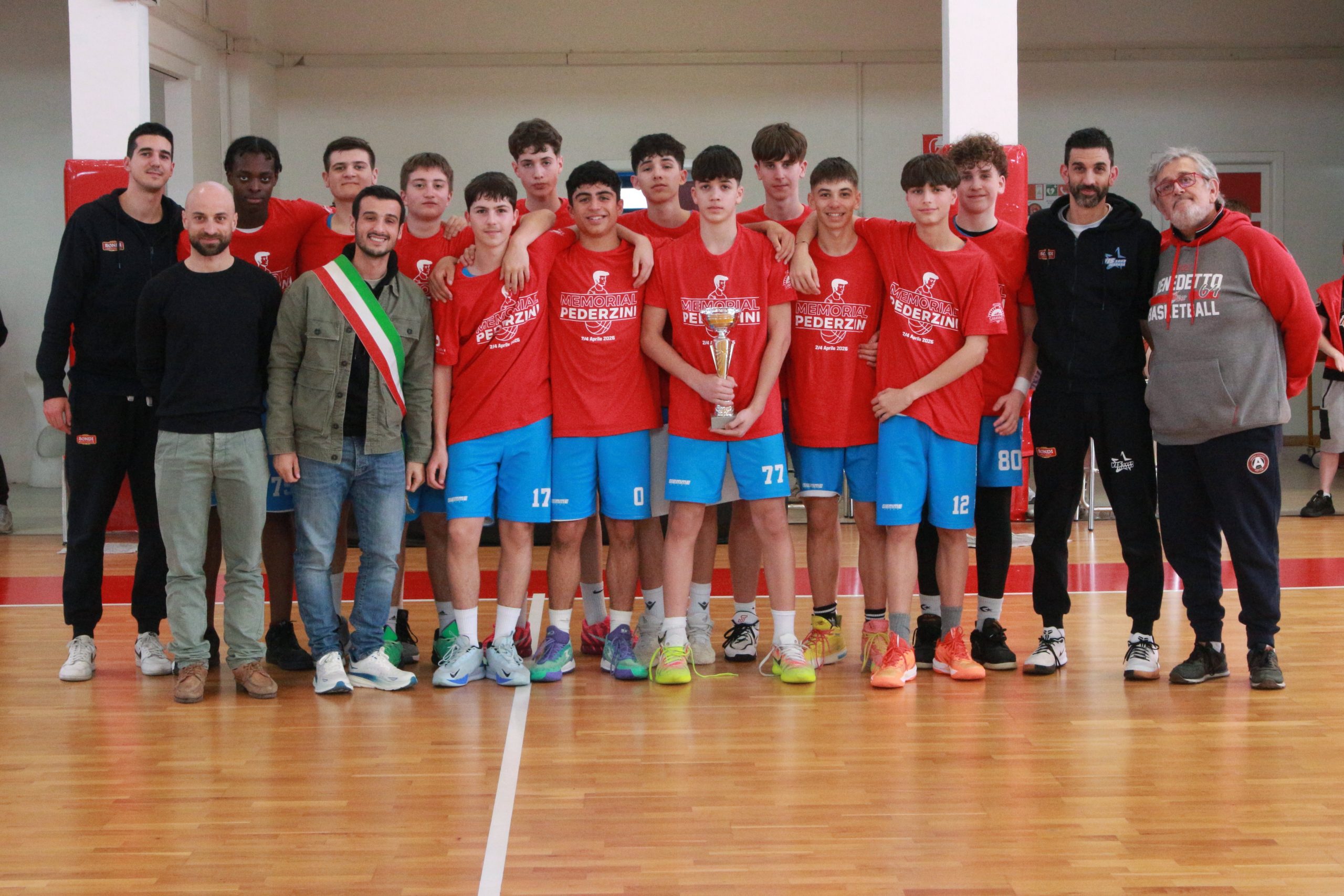 U14 Gold. Va alla Bondi Vis la terza edizione del Memorial “Emanuele Pederzini” di Cento, organizzato dalla Benedetto 1964. Nel weekend pasquale, i biancazzurri della formazione In&Young, in collaborazione con Scuola Basket Ferrara e Despar 4 Torri, trionfano in un torneo di grande prestigio grazie a un percorso netto da cinque vittorie in altrettante gare disputate.