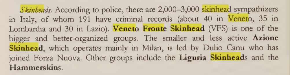 Il gruppo è stato anche citato nel testo pubblicato nel 2002 dalla Stephen Roth Institute for the Study of Contemporary Antisemitism and Racism dell’Università di Tel Aviv intitolato “Antisemism Worldwide“, in cui nel capitolo sull’Italia viene definito come “uno dei movimenti più grandi e meglio organizzati del territorio”.