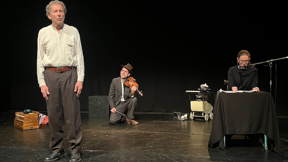 La scena è spoglia, solo gli attori e gli strumenti musicali; la narrazione è semplice e lineare: proprio qui sta la forza dello spettacolo, capace di ricreare l’atmosfera poetica e surreale dello Yiddishland. Impossibile non rivedere i personaggi e i colori di Marc Chagall, dai violinisti sul tetto dello shtetl a quel blu così frequente nelle opere dell’artista e usato dal padre di Daniel nella cantina che utilizzano come nascondiglio. E poi c’è l’ebreo errante, che apre e chiude lo spettacolo, metafora di un’umanità che ancora non riesce a trovare pace.