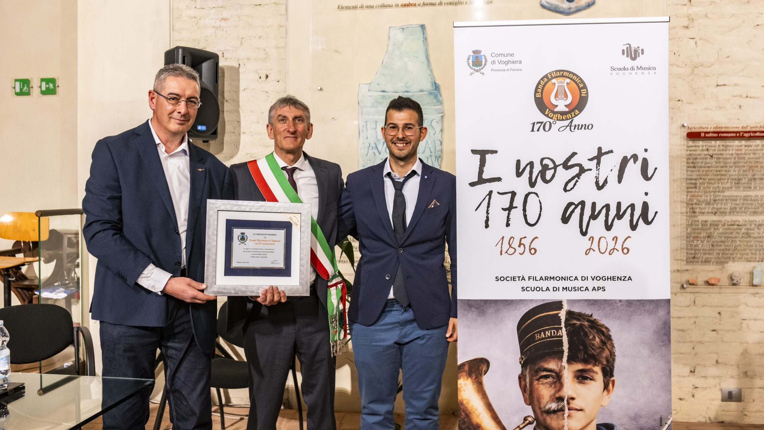 La conduzione della serata è stata affidata ad Andrea Poli, nel ruolo di animatore. L’apertura ufficiale ha visto i saluti del sindaco del Comune di Voghiera, Paolo Lupini, affiancato dall’assessore alla Cultura Emanuele Ganzaroli, che ha consegnato una targa di riconoscenza alla Società Filarmonica di Voghenza, rappresentata dal presidente Claudio Fioresi, per lo straordinario traguardo dei 170 anni di attività.