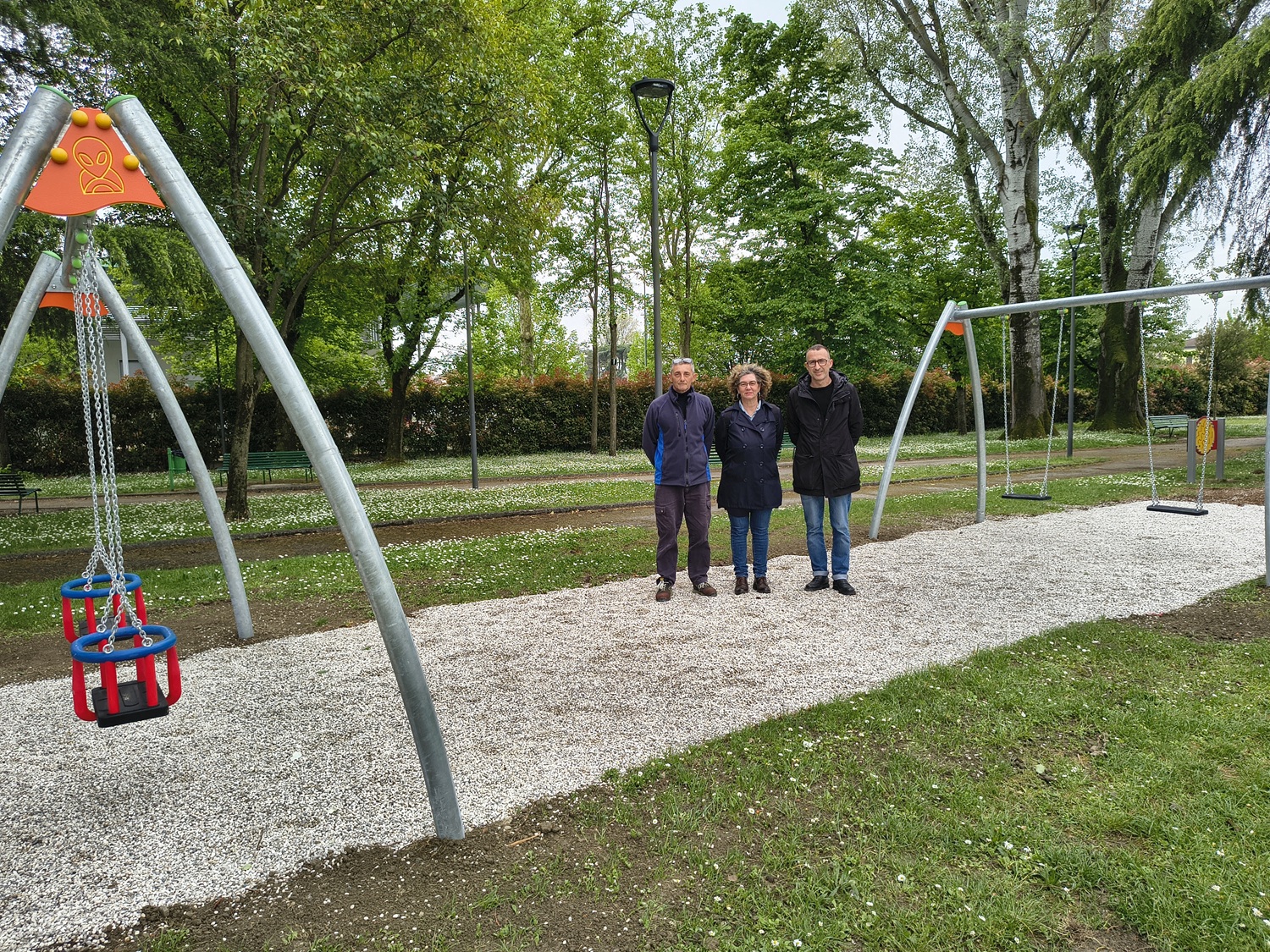 Nella mattinata di mercoledì 15 aprile, il vicesindaco Bruna Cirelli, Manuel Baglioni dell’Ufficio Tecnico – Settore Ambiente e Antonio Fabbri del Comune hanno provveduto alla rimozione del nastro segnaletico dai due giochi, ora a disposizione di bambine e bambini. Le altalene, in acciaio zincato, dispongono entrambe di due sedute.