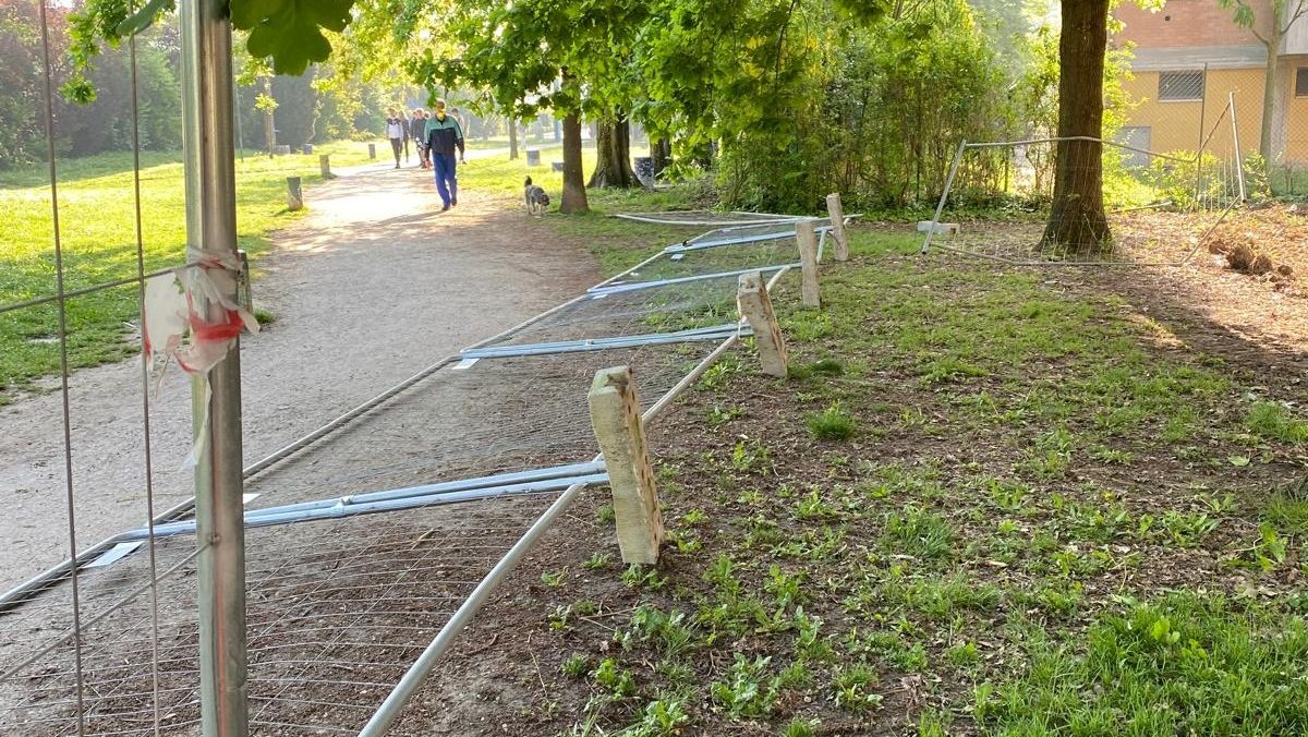 Cento. Ripetuti atti di vandalismo e danneggiamenti alla recinzione che separa l’area dell’Istituto tecnico Bassi-Burgatti in via Rigone e il giardino del Gigante a Cento.