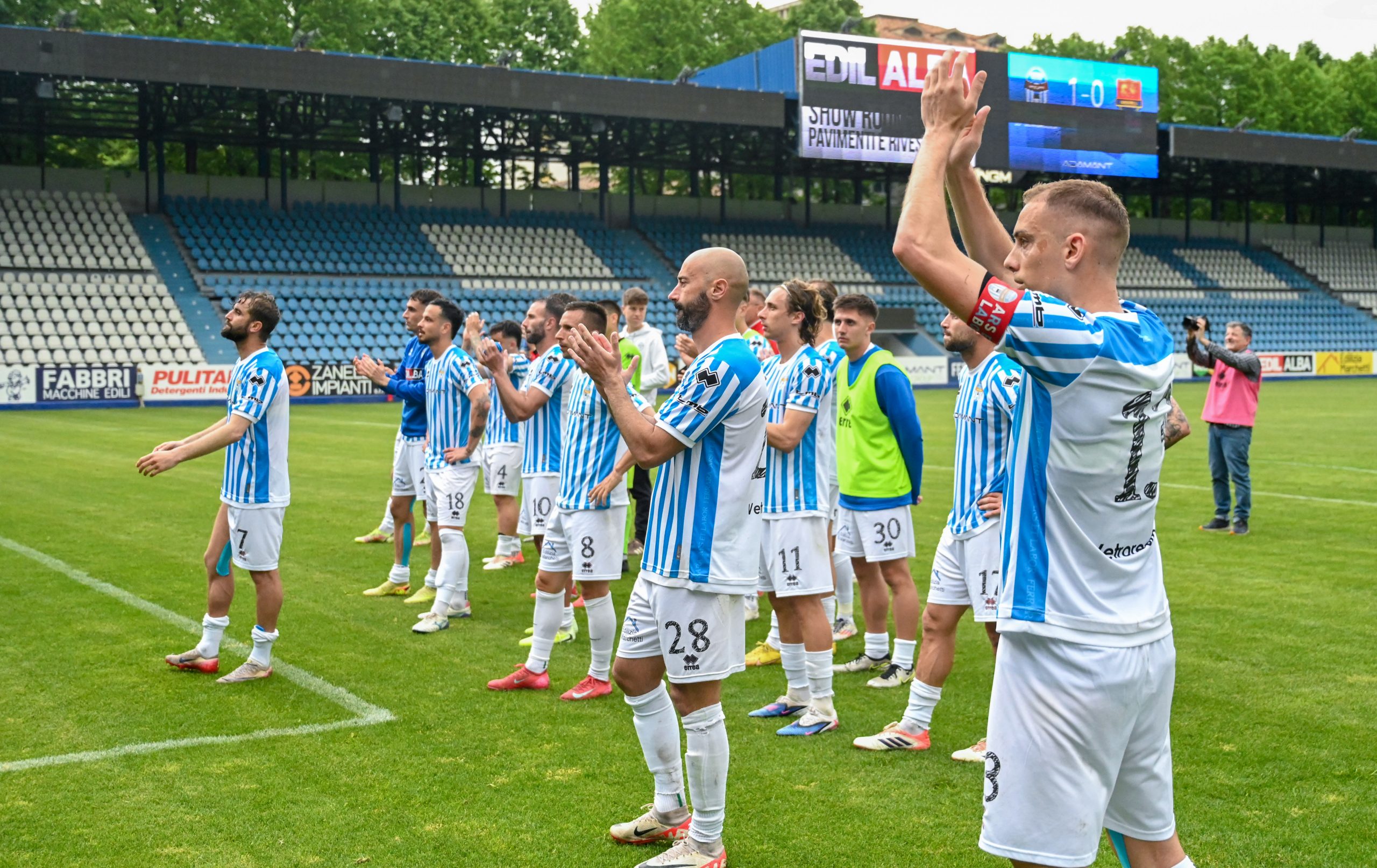 La cronaca. Solito 4-3-3 per Parlato nella penultima gara della regular season dei biancazzurri davanti al pubblico amico del Paolo Mazza. In porta va ancora Luciani, davanti a lui Iglio, Mambelli, Dall’Ara e Mazzali a comporre la linea difensiva. Centrocampo a tre con Cozzari, Mazza e Ricci, che torna titolare, mentre in attacco vengono schierati Senigagliesi, Piccioni e Carbonaro.