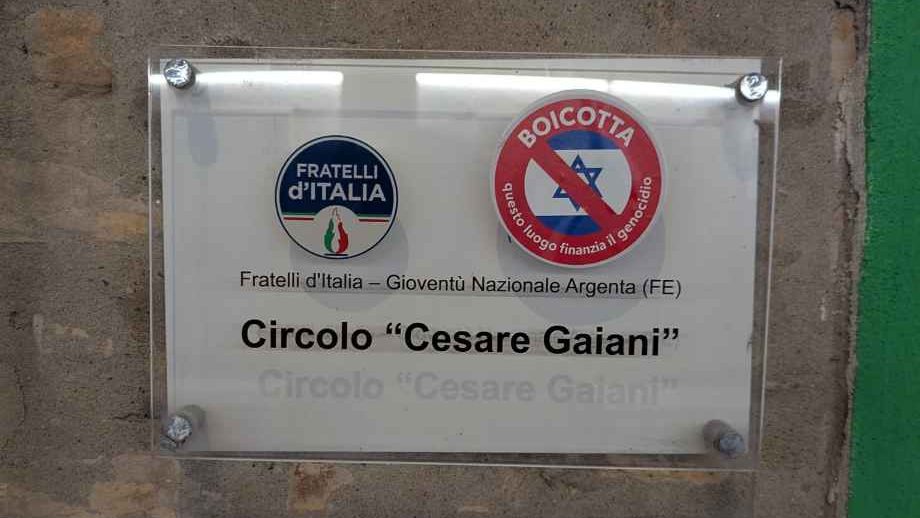 Argenta. Nuovo episodio ai danni della sede di Fratelli d’Italia in viale Roiti, ad Argenta. Nella notte ignoti hanno affisso due adesivi sulla vetrata del circolo, intitolato a Cesare Gaiani.