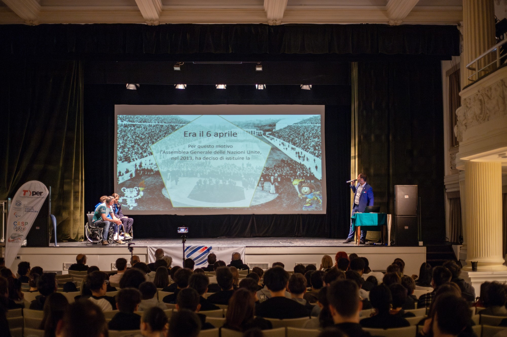 I Saluti iniziali sono stati affidati ai delegati di Comitato Italiano Paralimpico Giuseppe Francesco Alberti e CONI Ruggero Tosi, unitamente al referente territoriale per l’Educazione Fisica e Sportiva per. Ferrara Andrea Vanini, che hanno sottolineato come il lavoro comune, quel “together” oggi nel motto olimpico, sia fondamentale. Ed è stato davvero un grande lavoro d’insieme quello del comitato organizzatore, che ha consentito di arrivare a mettere in scena questa quarta edizione teatrale della parte parte più didattica del percorso di cultura sportiva disegnato da Sport is Live/Life “ricordando Fabio Falchetti” che, a settembre, animerà la Darsena con la giornata paralimpica durante il Ferrara Sport Festival, reso possibile in primis dalla famiglia Falchetti che, nel ricordo di Fabio, promuove questa iniziativa che si propone di mettere al centro il tema dell’attività motoria come strumento per la crescita personale e la realizzazione della persona con disabilità, realizzato con il patrocinio del Comune di Ferrara, Università degli Studi di Ferrara, Sport e Salute, UNASCI, CONI Delegazione di Ferrara, Panathlon Club Ferrara, ACLI Provinciali di Ferrara, e gli indispensabili contributi organizzativi di AVIS Provinciale e Comunale, Lions Ferrara Host, esse.ti computer, TPER, Banca Centro Emilia, Afrika Twende e Palestra Ginnastica Ferrara ASD.