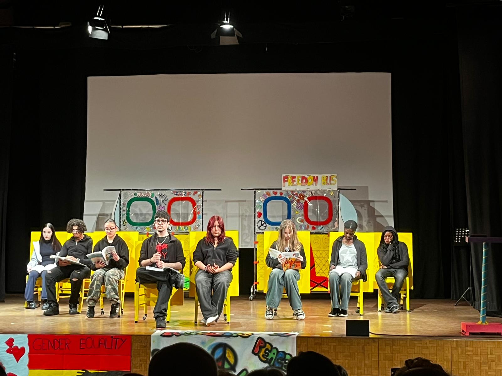 L’arte è stata l’ultimo atto di questo percorso con lo spettacolo teatrale “Prossima fermata: Noi!”, nato dalla sinergia con l’Associazione TemperaMenti con i docenti. Una scrittura collettiva degli studenti che hanno messo in scena testi profondi contro razzismo e bullismo, commuovendo docenti e compagni.