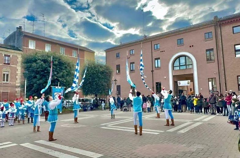 Alle ore 10.15 la Contrada di San Paolo riporterà Ferrara al 3 luglio 1473, giorno delle nozze tra il Duca Ercole I d’Este ed Eleonora d’Aragona. Tra musiche festose e danze di popolo, la piazza rivivrà i festeggiamenti che animarono la città in quell’occasione. Ma la celebrazione sarà interrotta da una voce fuori dal coro: quella dell’autore del De Ruina Mundi, Girolamo Savonarola, che svelerà al pubblico il vero volto della festa, smascherando i sette vizi capitali incarnati dai personaggi in scena.