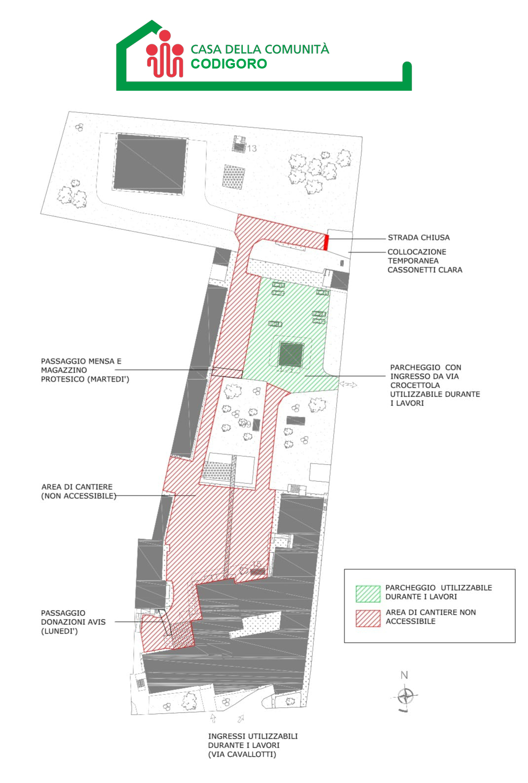 Rimane attivo il percorso alternativo per l’accesso alla struttura da parte di utenti ed operatori attraverso l’ingresso anteriore, posto su Via Cavallotti.