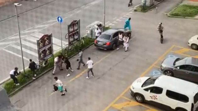 Durante il parapiglia, nato per motivi al momento ignoti, le immagini mostrano anche uno dei presenti farsi largo con uno zaino, per poi allontanarsi, uscendo dall’inquadratura mentre la telecamera continua a riprendere il violento tutti contro tutti.