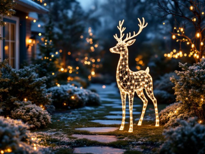 Tra le varie figure luminose, la renna natalizia occupa da sempre un posto speciale: simbolo di eleganza e tradizione, è diventata nel tempo la vera protagonista delle scenografie all’aperto