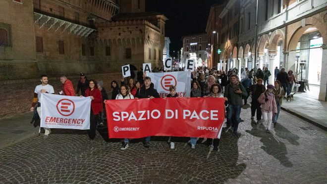 Circa ottanta persone si sono riunite nella serata di sabato 8 novembre in Largo Castello a Ferrara per partecipare al sit-in promosso da Emergency nell’ambito della campagna nazionale R1pud1a