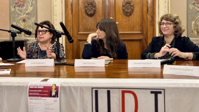 C'è un gesto semplice che apre il pomeriggio dedicato agli 80 anni dell'Unione Donne in Italia: un mazzo di fiori consegnato a Liviana Zagagnoni, storica esponente dell'associazione, figura di riferimento per tante tra le più giovani e per tutte le "nuove arrivate" nell'Udi a Ferrara