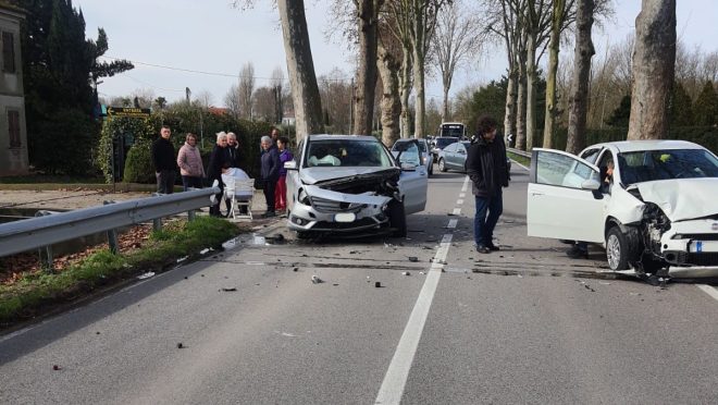 Incidente stradale intorno alle ore 12 in via Comacchio, all’altezza del civico 340, dove due auto - Mercedes e Fiat Punto - sono rimaste coinvolte in una collisione fronto-laterale