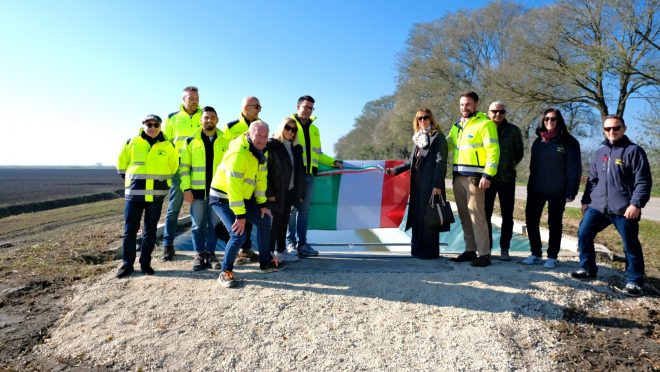 Il Consorzio di Bonifica Pianura di Ferrara ha voluto celebrare la conclusione del primo degli interventi del Pnrr, il Piano Nazionale di Ripresa e Resilienza: il recupero conservativo del rivestimento della Canaletta Mantello 1